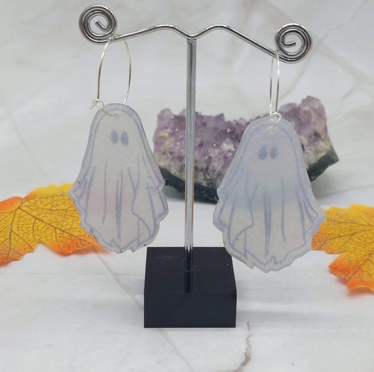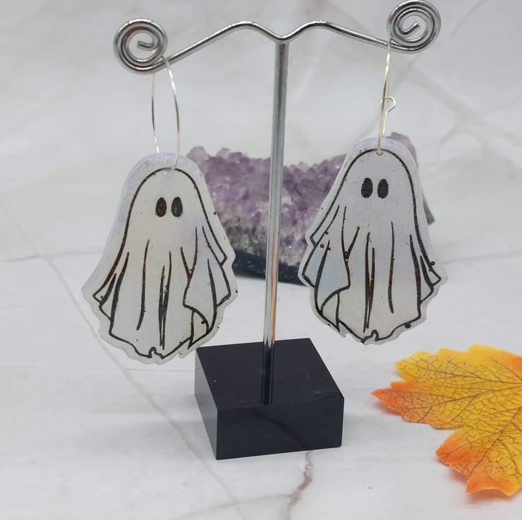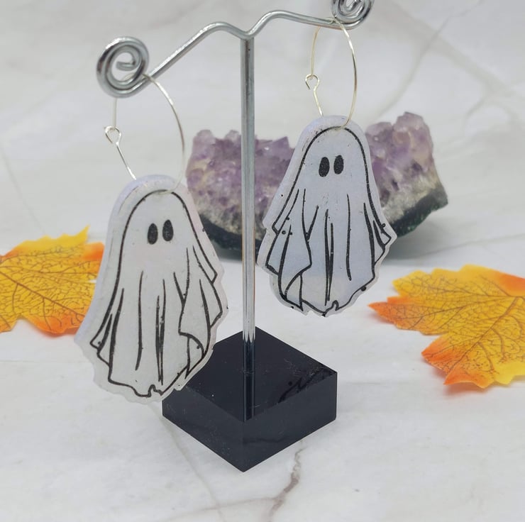 Halloween Ghost Hoop Earings, Resin Ghost Earrings, Ghost Hoops, Halloween Hoops