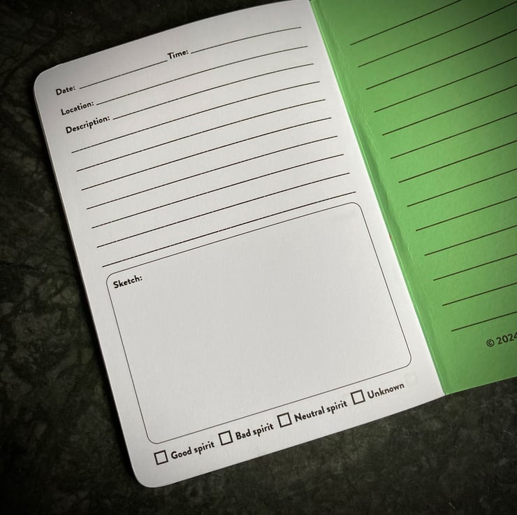 A really fun little book for any horror fan or aspiring ghost hunter to record their paranormal encounters.