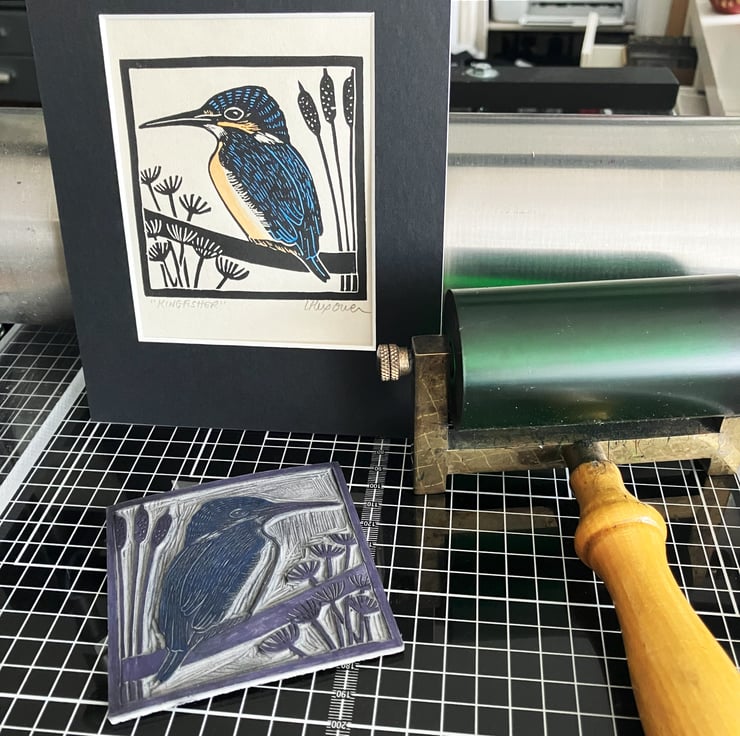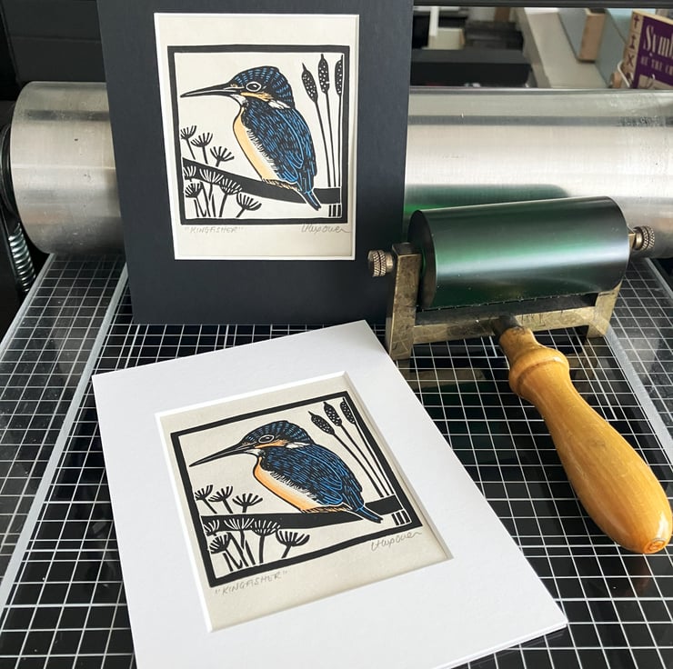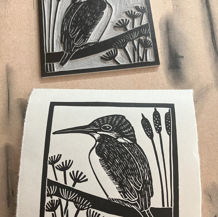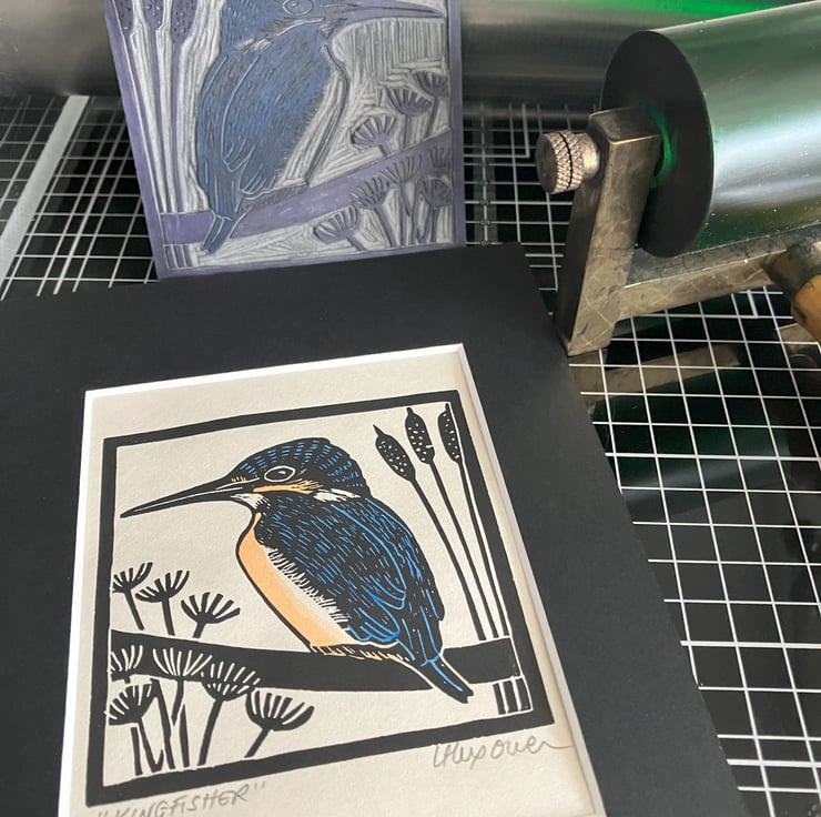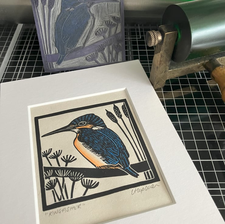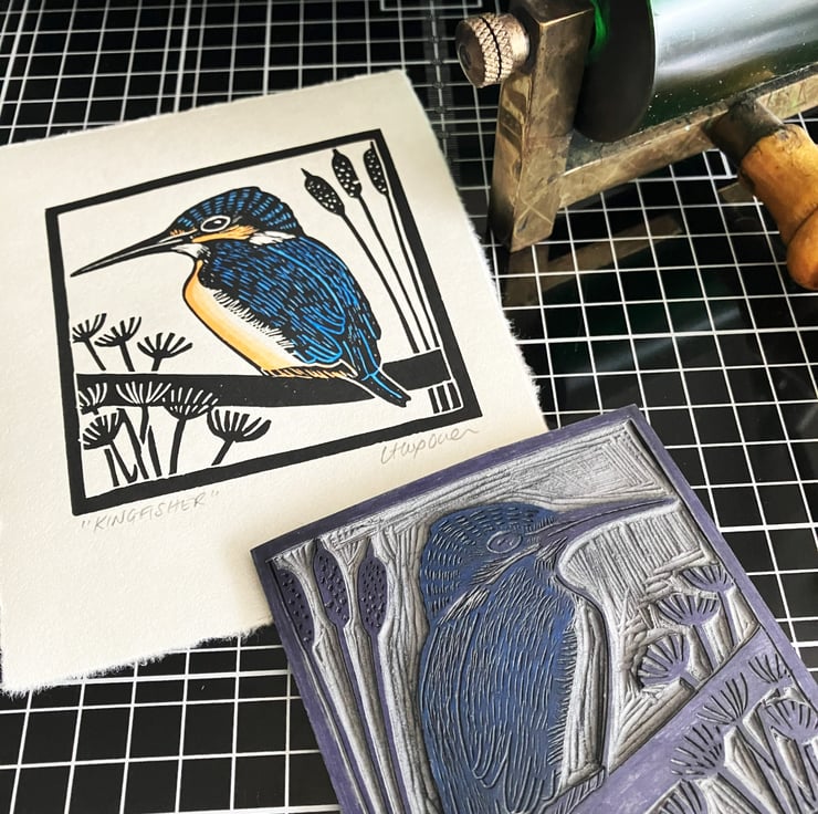 Lino Print - Kingfisher - Original Print - Hand Printed