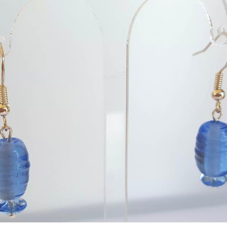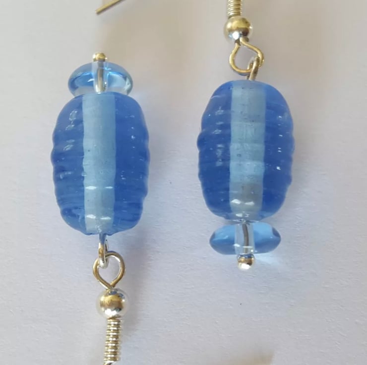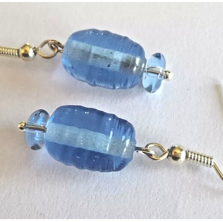 Smokey Blue Beaded Dangle Earrings with Silver Plated Shepherd Hooks