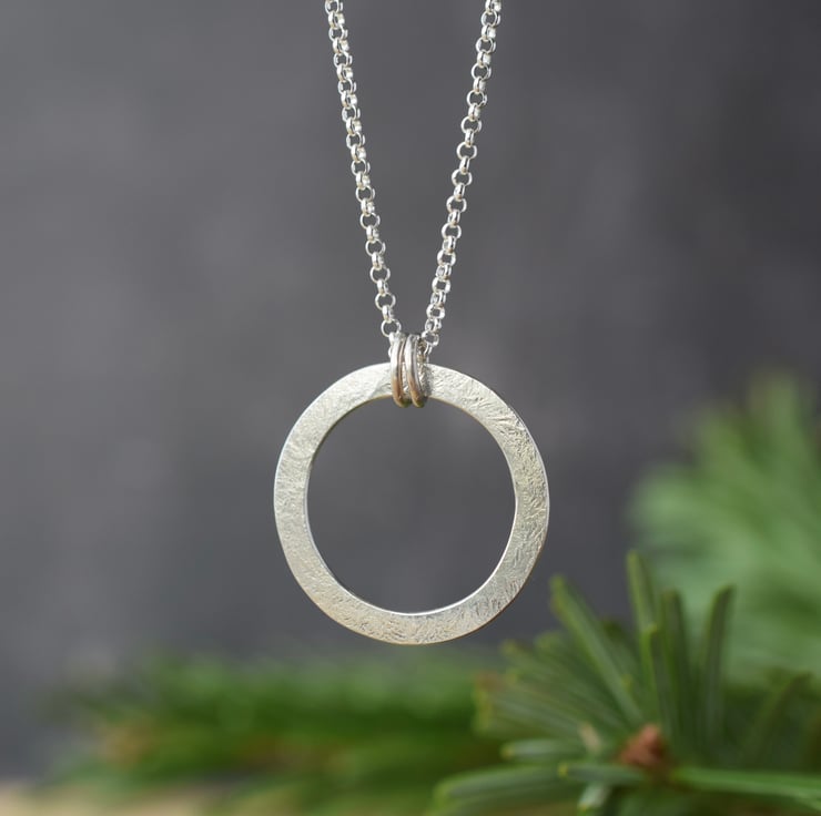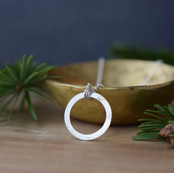 Textured Silver Circle Necklace