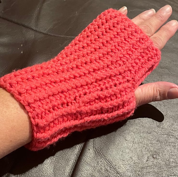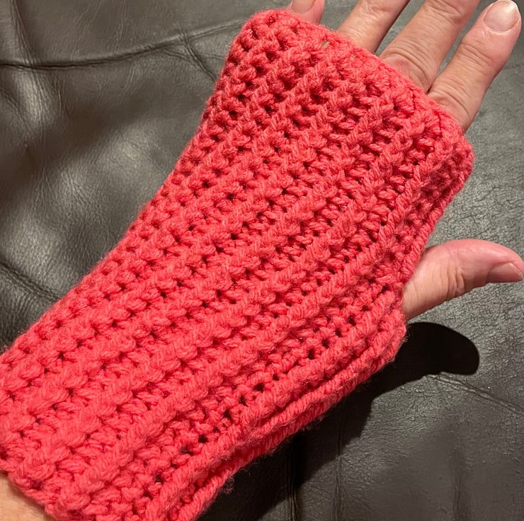 Gorgeous crocheted fingerless gloves with ribbed pattern
