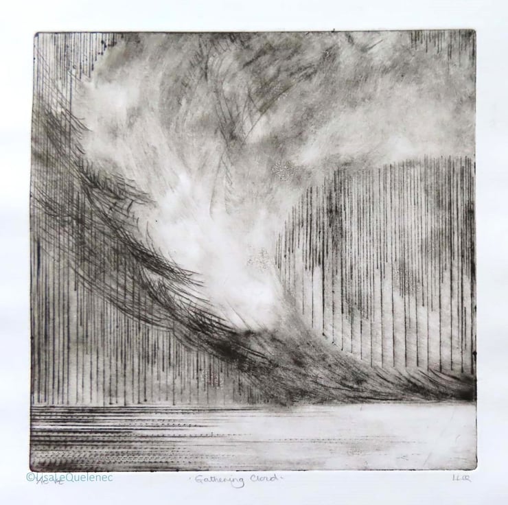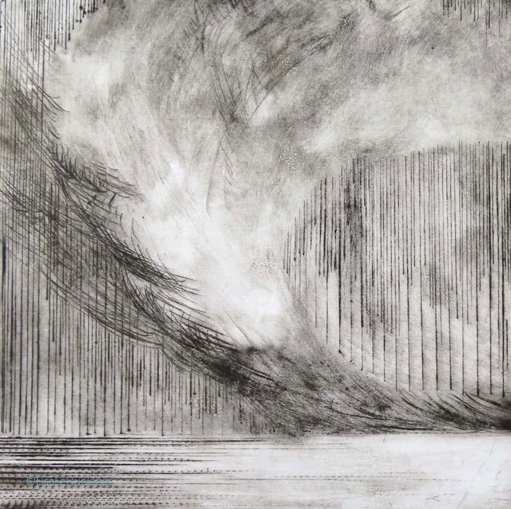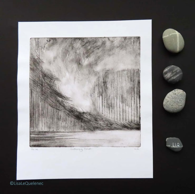 Original drypoint etching print of a storm gathering over the sea printed in black ink on white paper. This is no.1 print in an edition of 10 and is the second image in a larger format from my Heavy Weather series - smaller pieces from the series are available in my store.