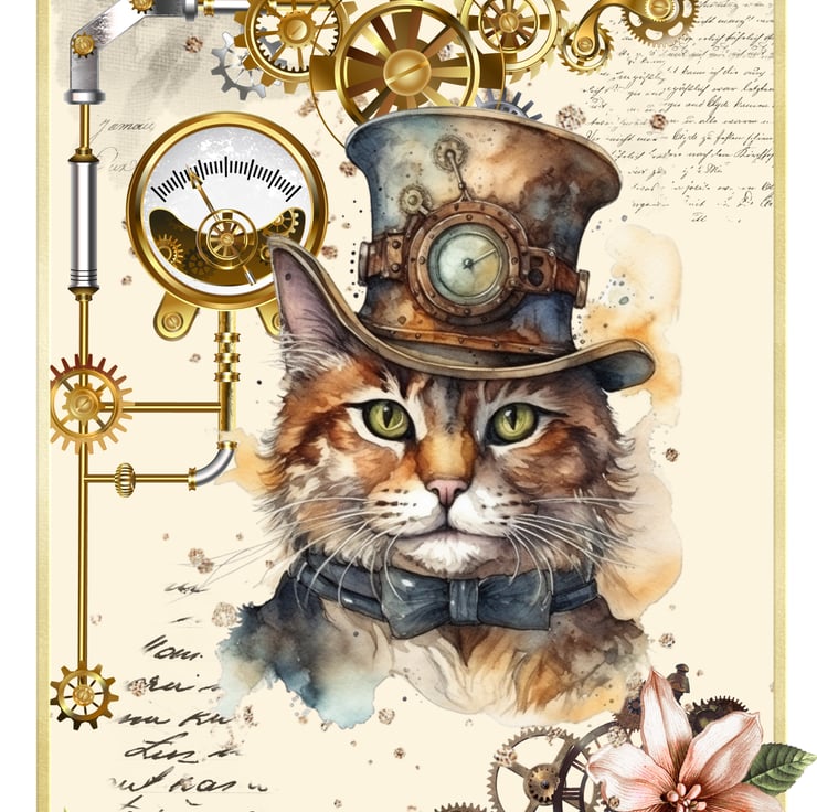 This Steampunk cat blank greeting card is perfect for crazy cat ladies and cat lovers like me! Featuring a rather dapper kitty gentleman in his vintage Victorian fines surrounded by more cogs and wheels than you can shake a stick at! £1 from each sale will be given to my favourite cat charity, Fur and Feathers Rescue https://www.fur-and-feathers.co.uk/