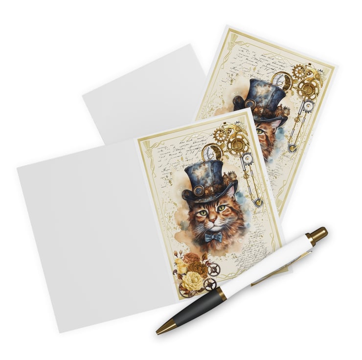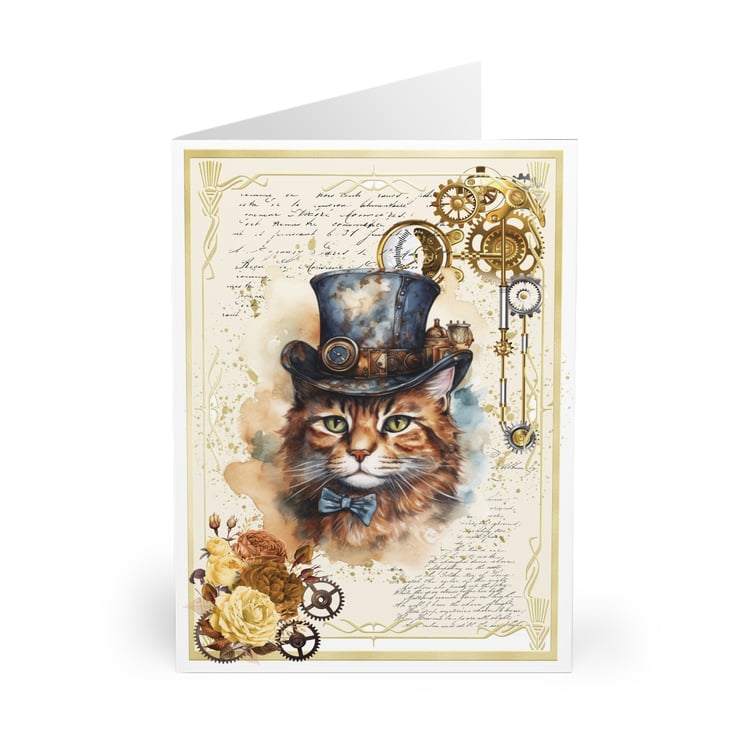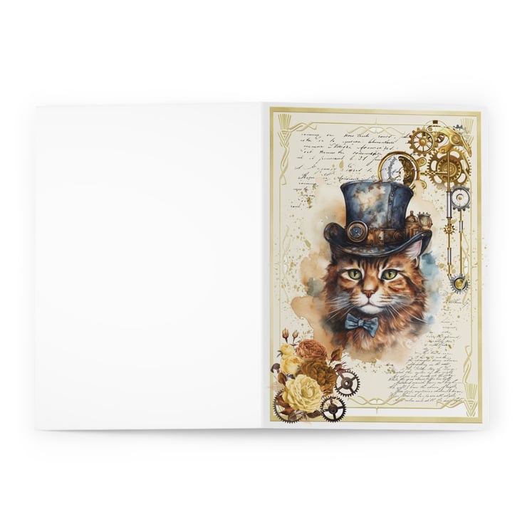 Steampunk Cat Blank Greeting Card. Cute Vintage Victorian Style for Cat Lovers!