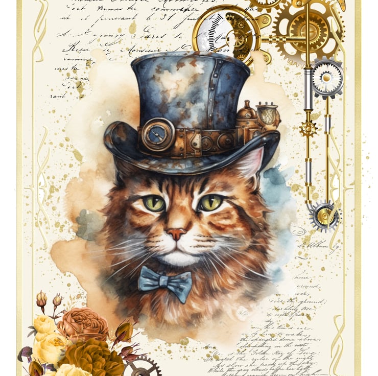 This Steampunk cat blank greeting card is perfect for crazy cat ladies and cat lovers like me! Featuring a rather dapper kitty gentleman in his vintage Victorian fines surrounded by more cogs and wheels than you can shake a stick at! £1 from each sale will be given to my favourite cat charity, Fur and Feathers Rescue https://www.fur-and-feathers.co.uk/
