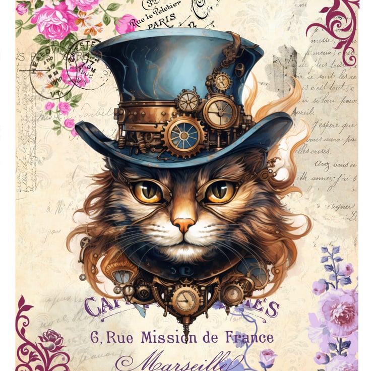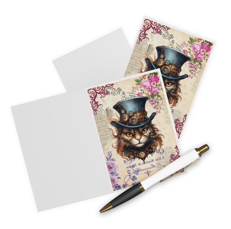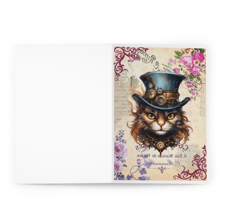 This Steampunk cat blank greeting card is perfect for crazy cat ladies and cat lovers like me! Featuring a cheeky chunk in his vintage Victorian hat surrounded by more cogs and wheels than you can shake a stick at! £1 from each sale will be given to my favourite cat charity, Fur and Feathers Rescue https://www.fur-and-feathers.co.uk/