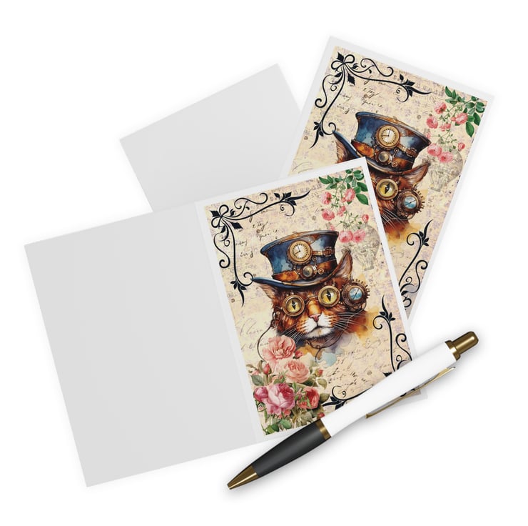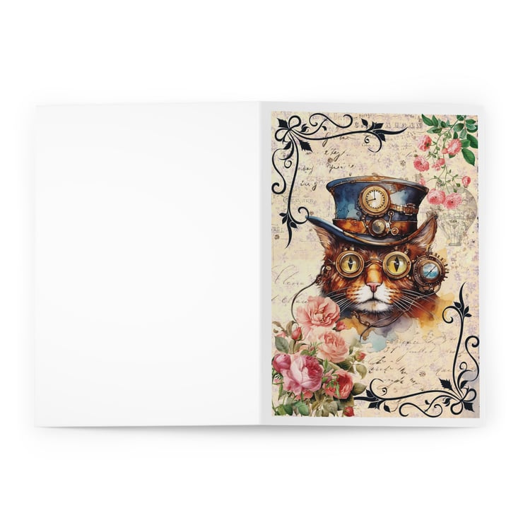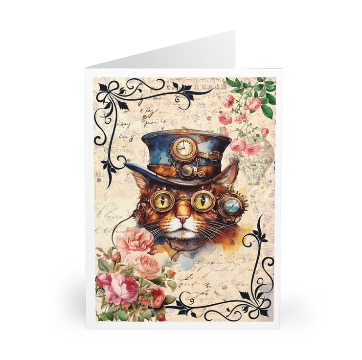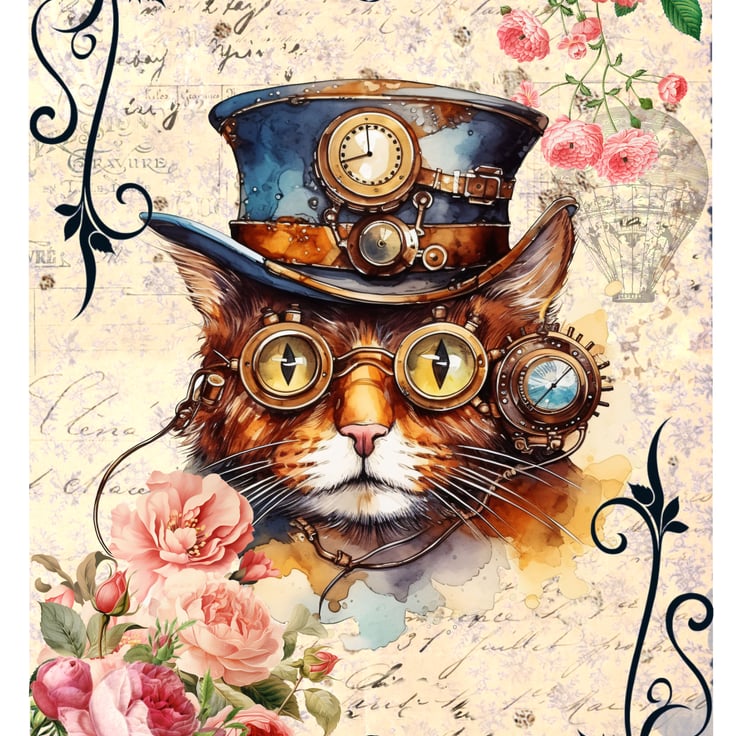 This Steampunk cat blank greeting card is perfect for crazy cat ladies and cat lovers like me! Featuring a cheeky chonk in his Victorian top hat surrounded by beautiful vintage roses and foliage. £1 from each sale will be given to my favourite cat charity, Fur and Feathers Rescue https://www.fur-and-feathers.co.uk/