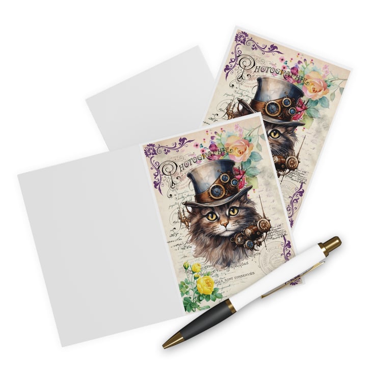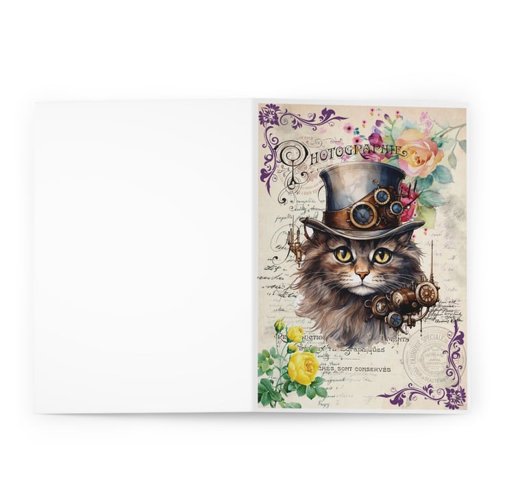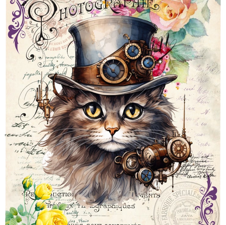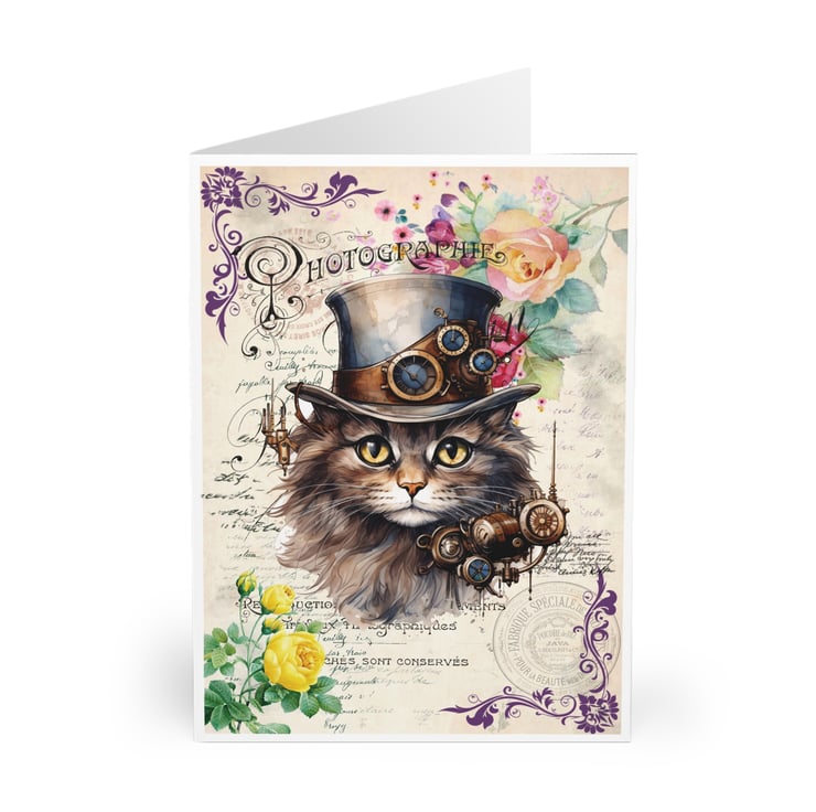 This Steampunk cat blank greeting card is perfect for crazy cat ladies and cat lovers like me! Featuring a cheeky chonk in his Victorian top hat surrounded by beautiful vintage roses and foliage. £1 from each sale will be given to my favourite cat charity, Fur and Feathers Rescue https://www.fur-and-feathers.co.uk/
