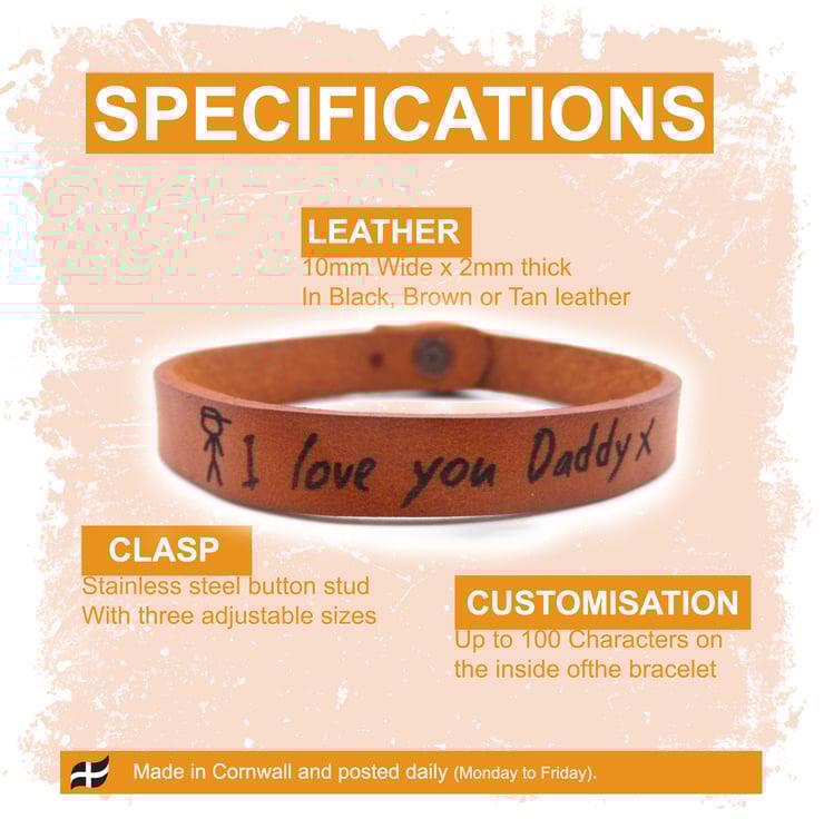 NOTE - Email a picture of the handwriting that you would like engraved on the front of the bracelet to sales(at)outofcornwall.co.uk