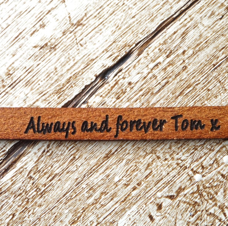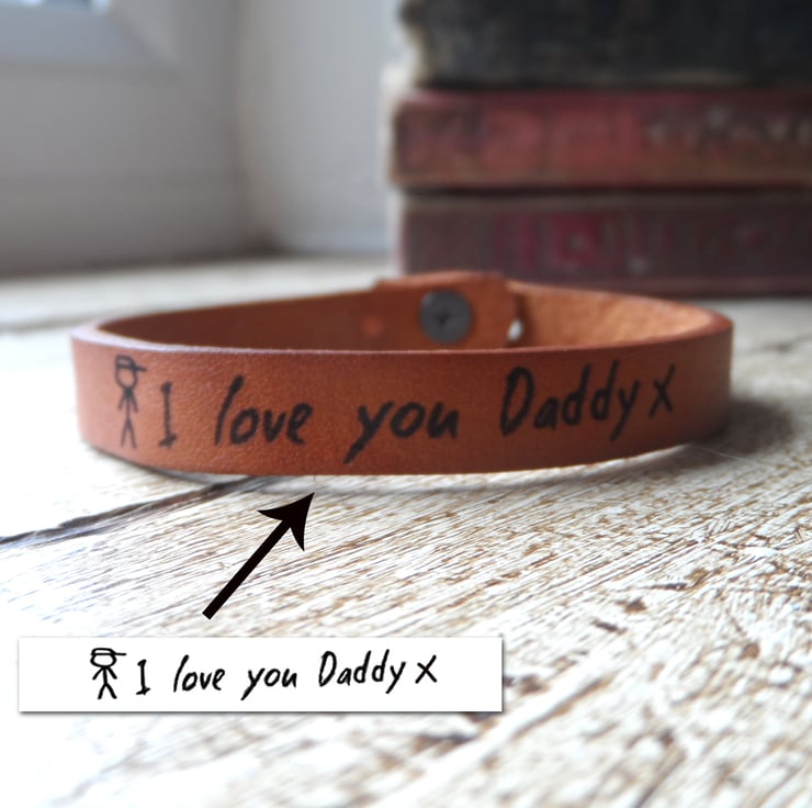 This stunning accessory puts your unique script front and center, transforming an ordinary bracelet into a one-of-a-kind work of art. Imagine the joy of wearing your own handwritten words, scrawled across this beautiful leather band. It's the ultimate way to showcase your individuality and inject a little bit of "you" into your everyday style.