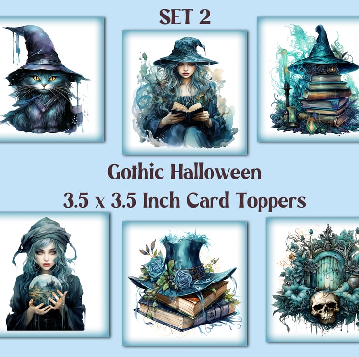 A set of six 3.5 inch square card toppers - Gothic Halloween Set 2 of 2