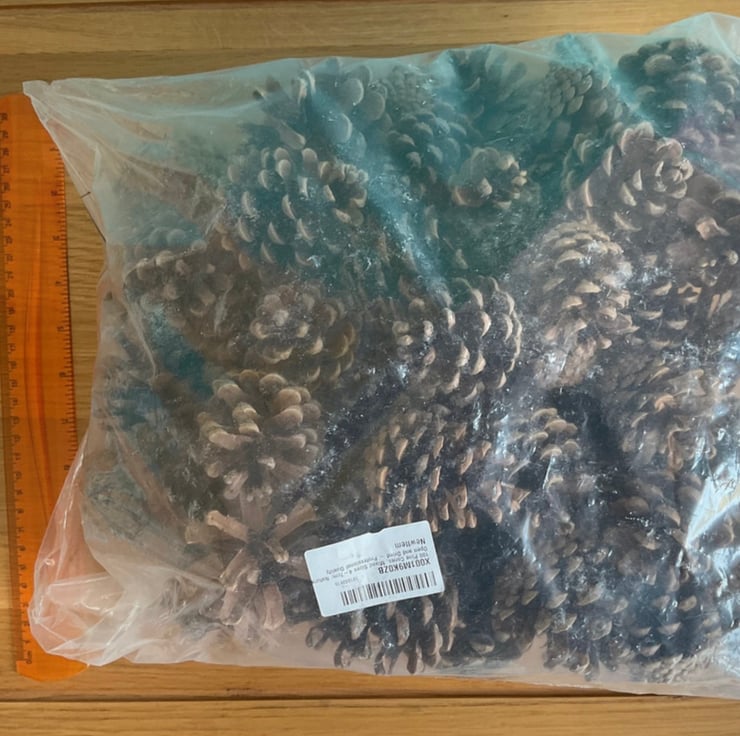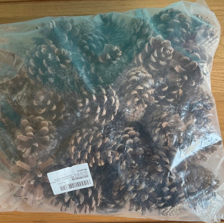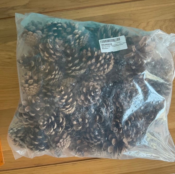 The pine cones measure between 4 - 7 cms with a weight of just over 1 kg. Perfect for wreaths, decorations and other crafting items.