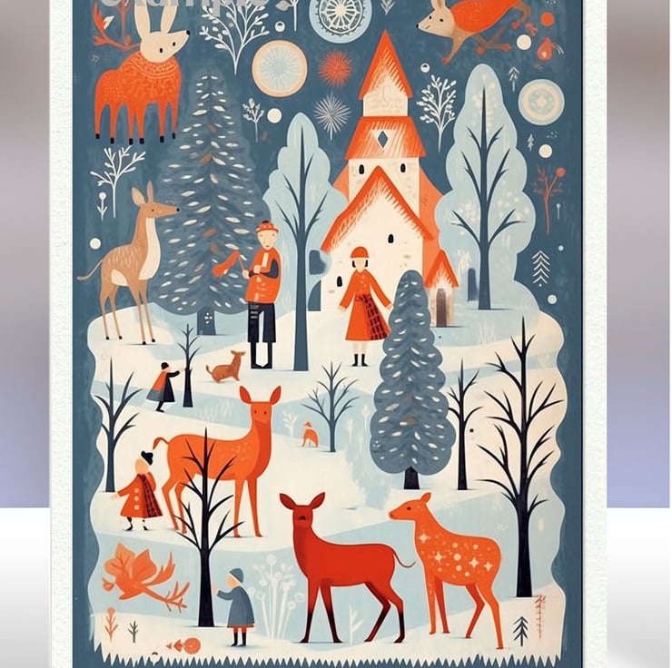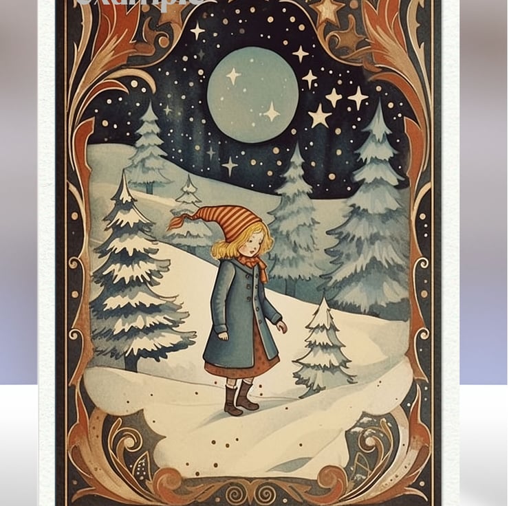 A set of eight 2.5 x 3.5 inch card toppers - Vintage Christmas Scenes