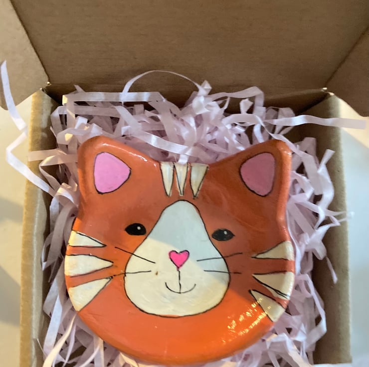 I have crafted this adorable cat face from air dry clay, it has been carefully dried, sanded then hand painted and varnished with a lovely gloss finish.