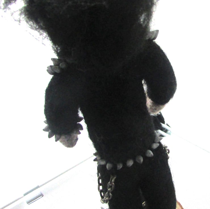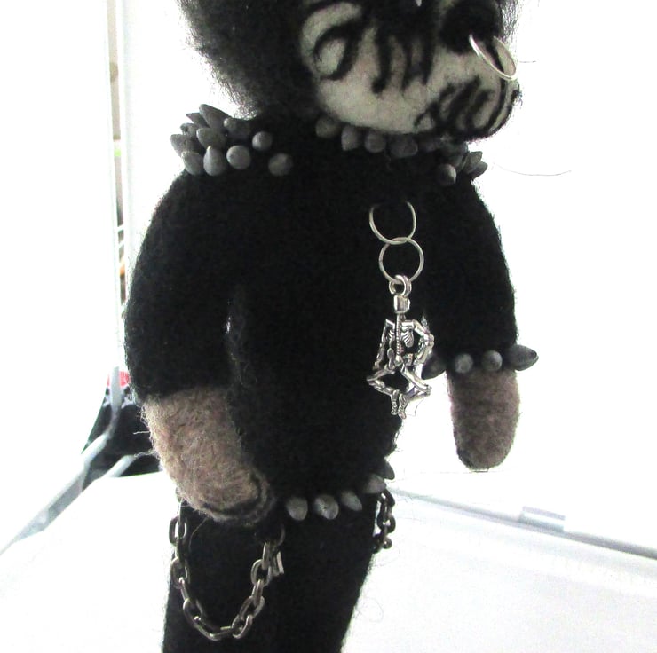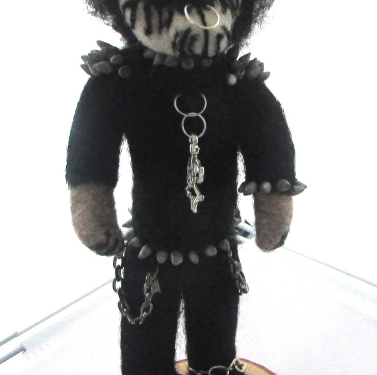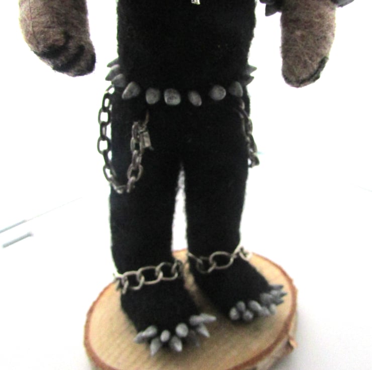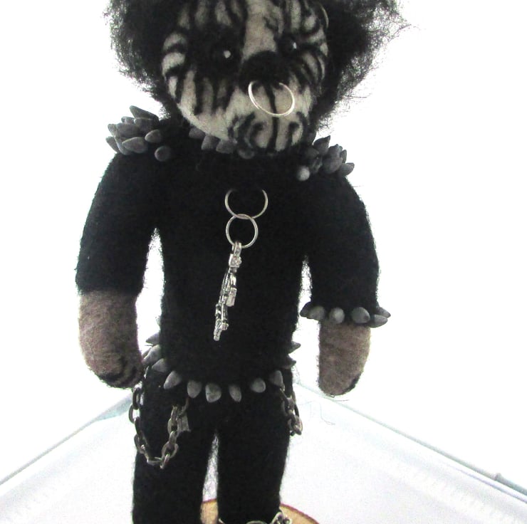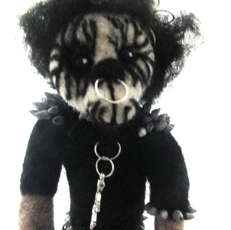 The bear comes adorned in mini gothic attire, complete with spikes, chains, to give it that rebellious metal edge. This handmade treasure is an ideal gift for black metal fans, alternative collectors, or anyone looking for a unique, handmade gothic item.
