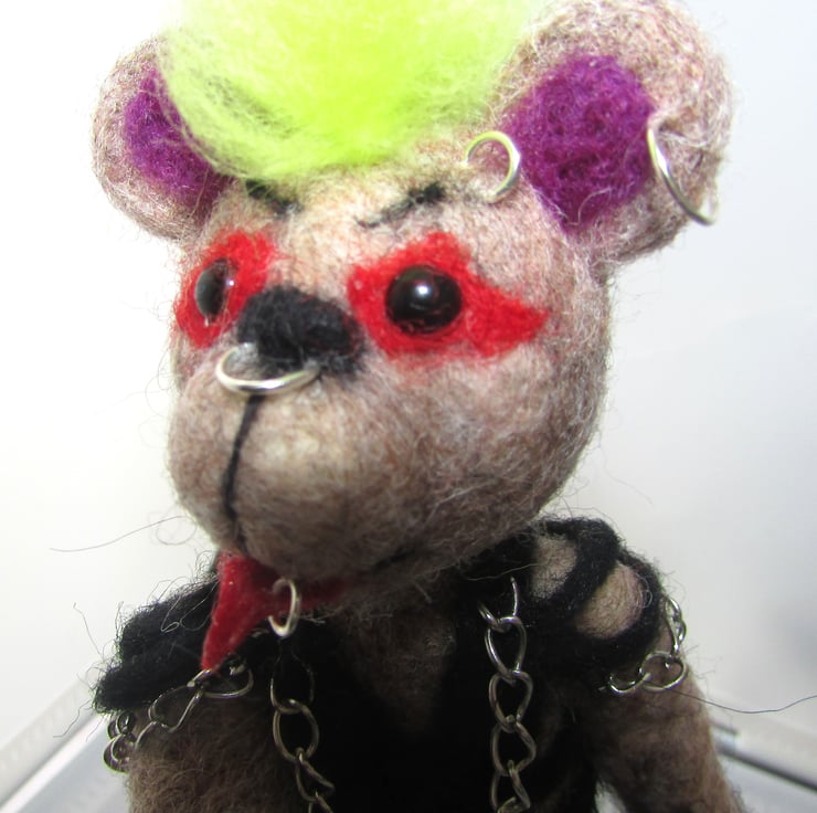 Handmade Gothic Teddy Bear  Needle-Felted Heavy Metal Gift  Gothic Decor
