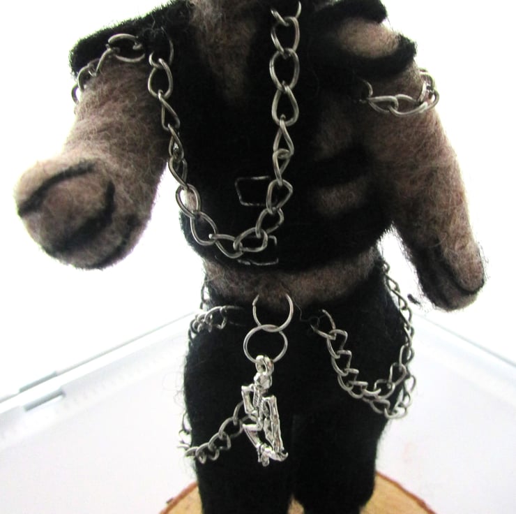 Add a touch of darkness to your collection with this unique Handmade Gothic Teddy Bear! Carefully crafted using high-quality wool and the intricate art of needle felting, this bear brings together the adorable charm of a teddy bear with a dark, heavy metal twist.