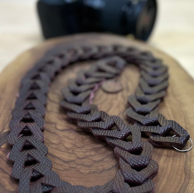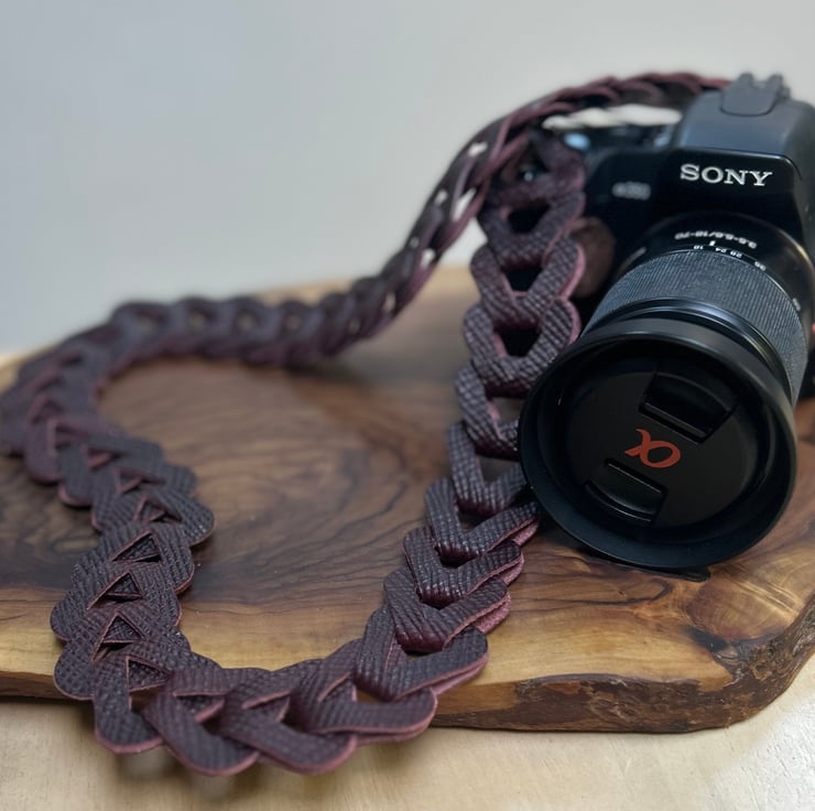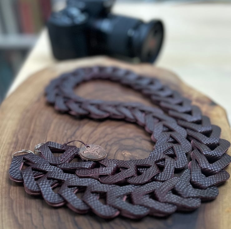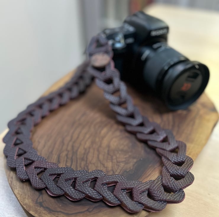 Leather camera neck strap handmade with interlocking premium leather loops that create a chain effect, would make the perfect gift for a loved one.