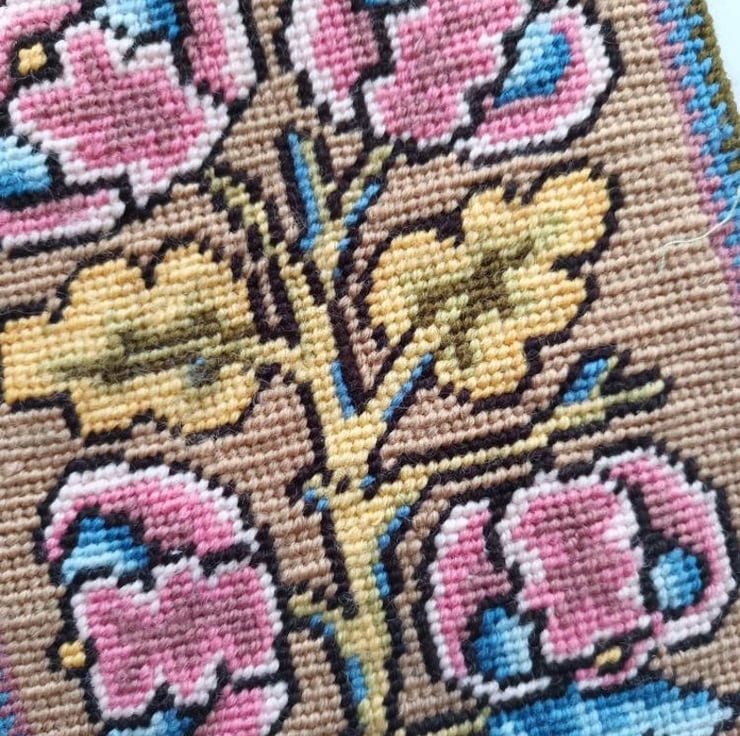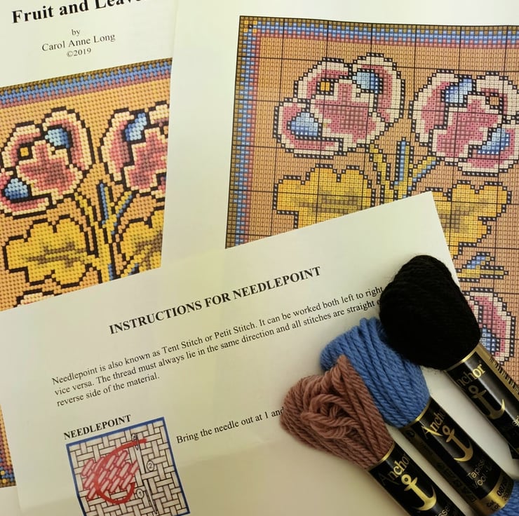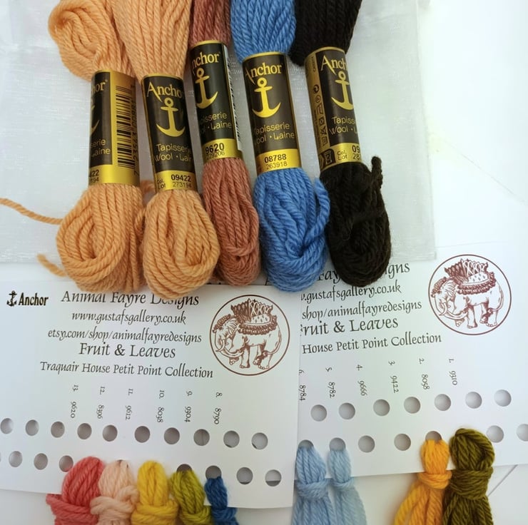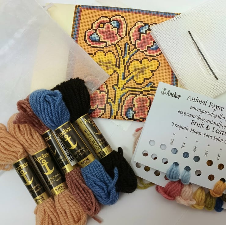 Fruit and Leaves Petit Point kit was one I redesigned for Traquair House from an old petit point panel dating from the Stuart Period.