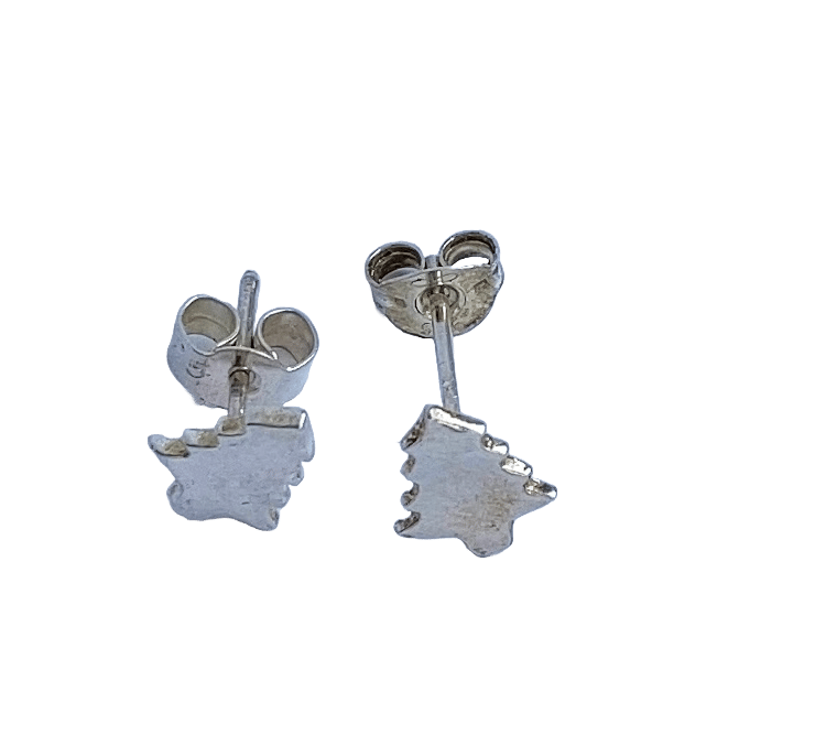 Mini silver shaped Christmas tree studs complete with sterling silver butterfly backs.