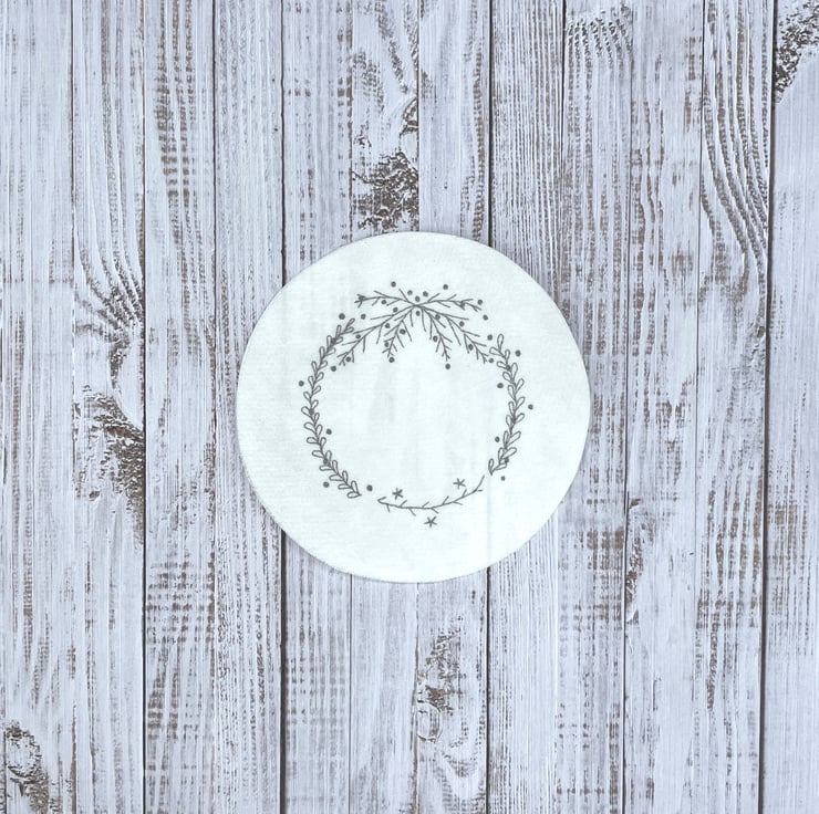 This charming wreath sticker makes a simple and elegant embroidered Christmas decoration.