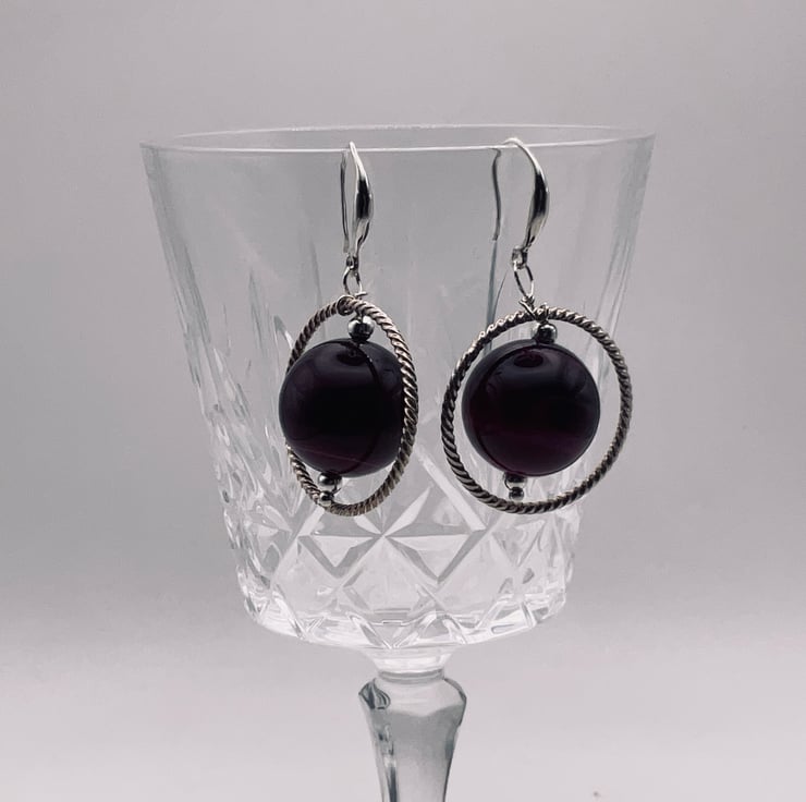 The 25 mm burgundy agate beads hang in a hoop 30 mm . The perfect mini gift, stocking filler, secret Santa and more!