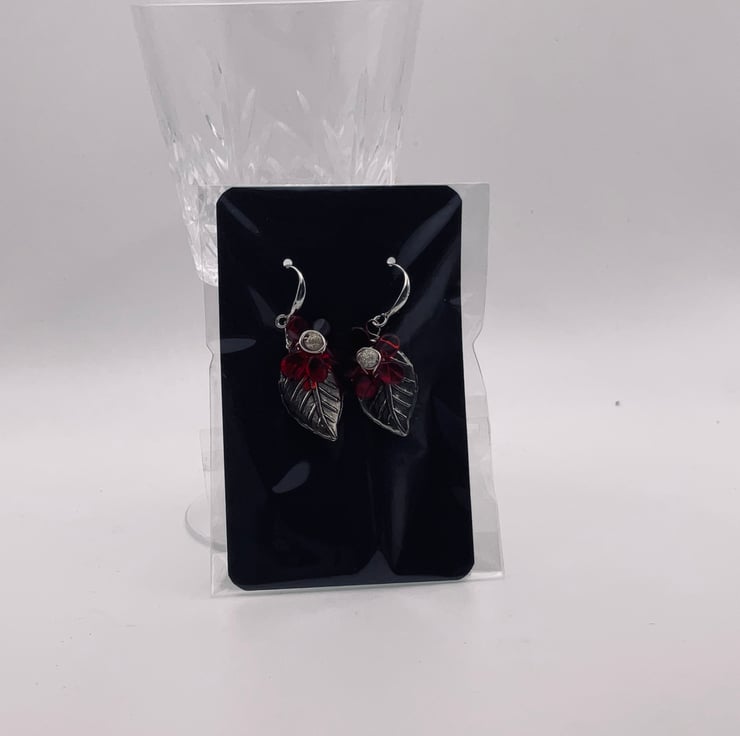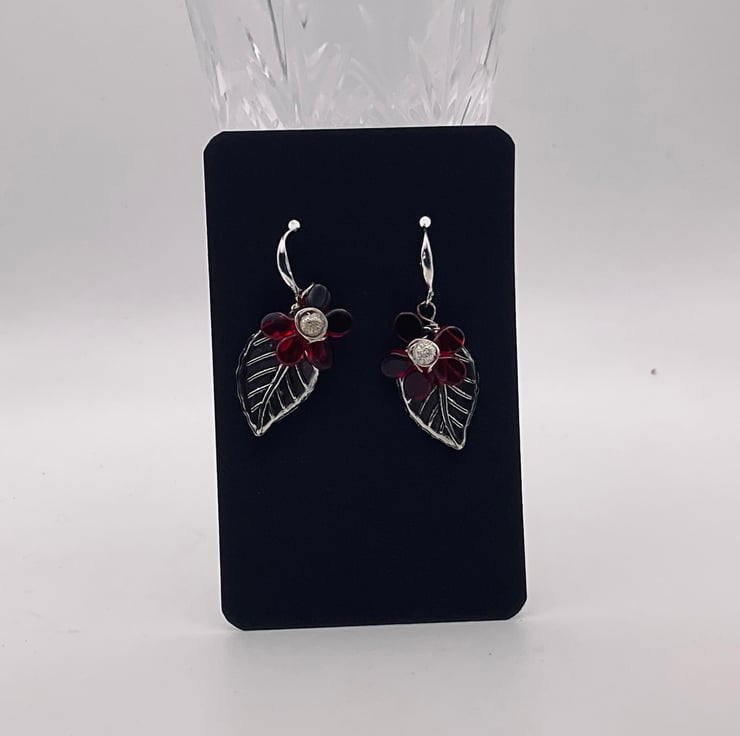 The red flower is Presciosa glass with a central silver star burst bead. It sits on a silver coloured leaf dangle 25 mm long. Perfect as a mini gift, secret Santa or stocking filler and more!