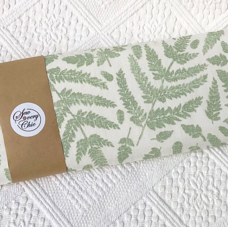 Using a Mint Fern linen fabric and filled with natural wheat and Yorkshire Lavender (optional)