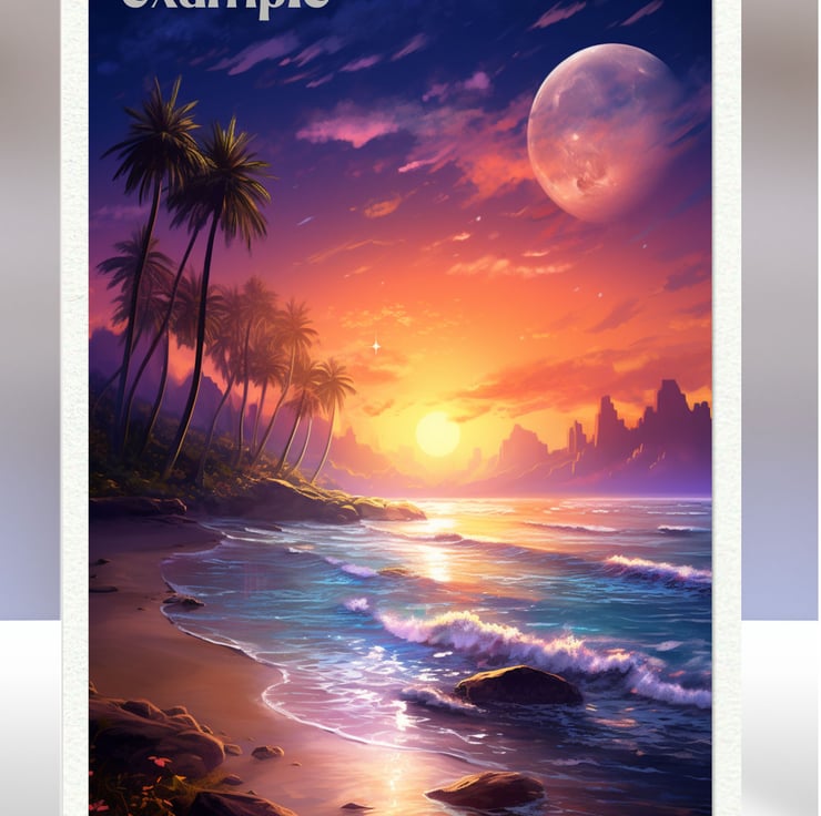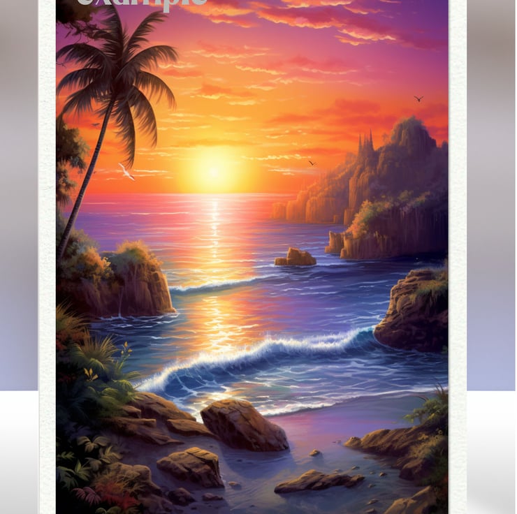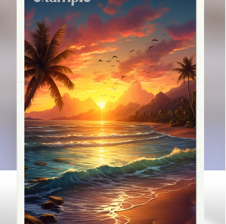 A set of eight 2.5 x 3.5 inch card toppers - Beaches at sunset set 1 of 2