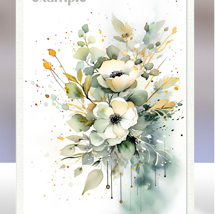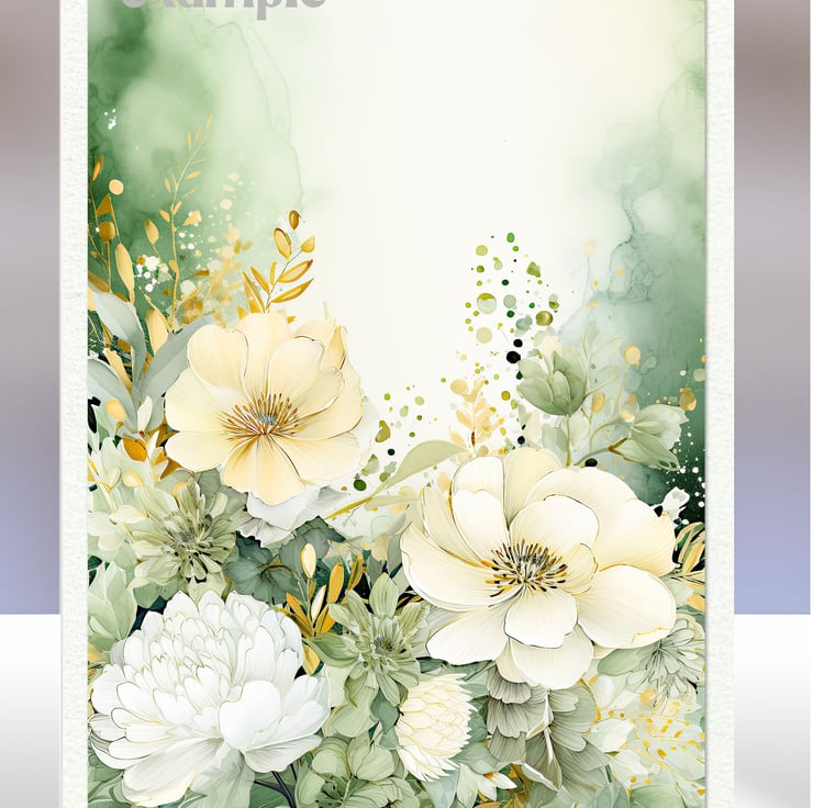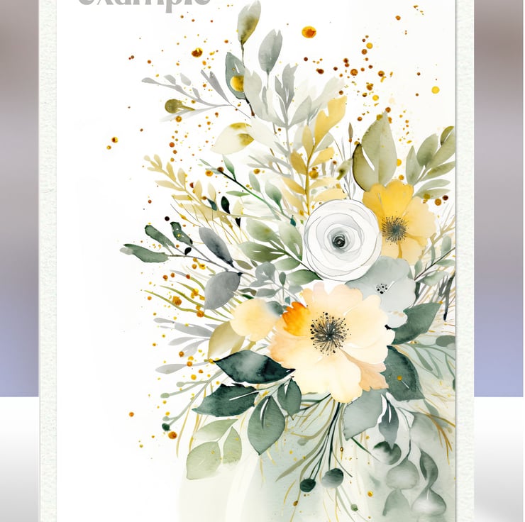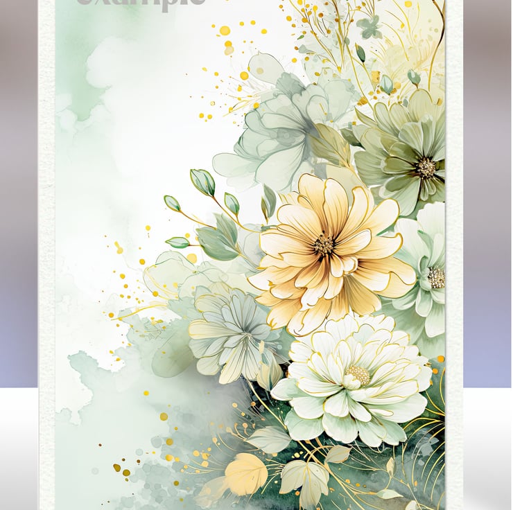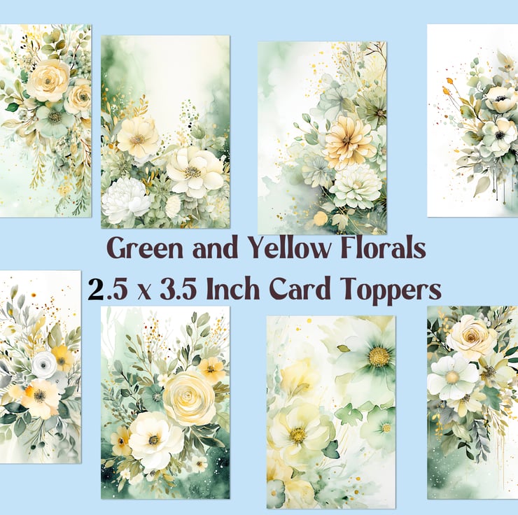 A set of eight 2.5 x 3.5 inch card toppers - Green and yellow florals