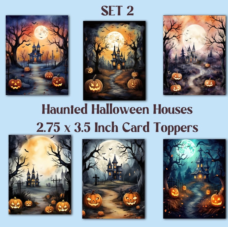 A set of six 2.75 x 3.5 inch card toppers - Haunted Halloween Houses Set 2 of 3