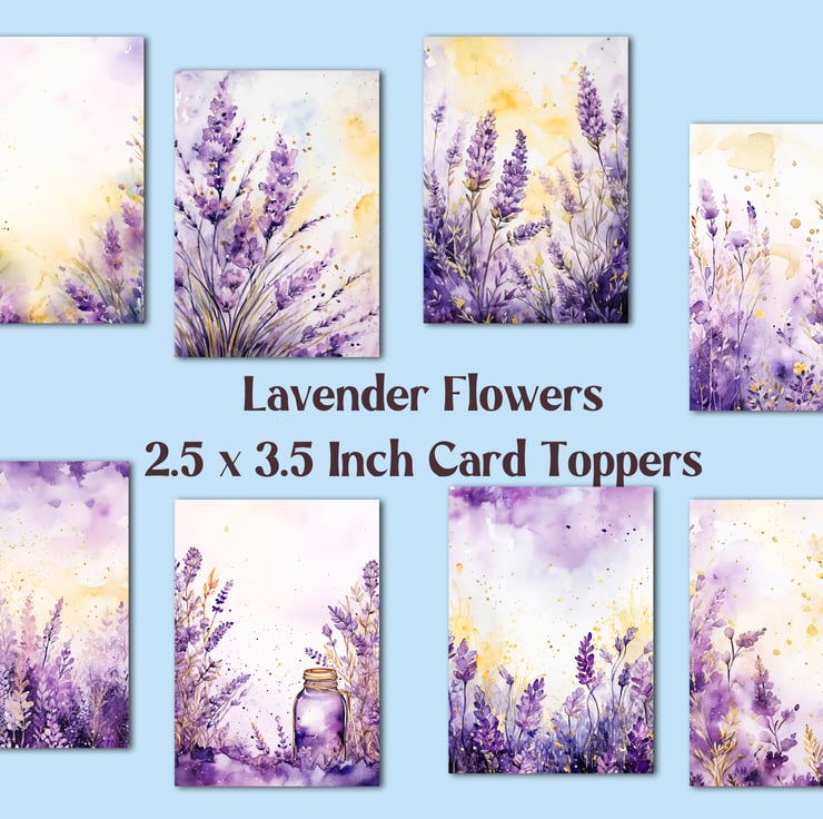 A set of eight 2.5 x 3.5 inch card toppers - Lavender Flowers