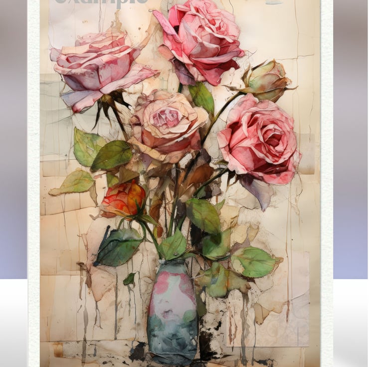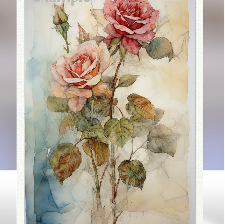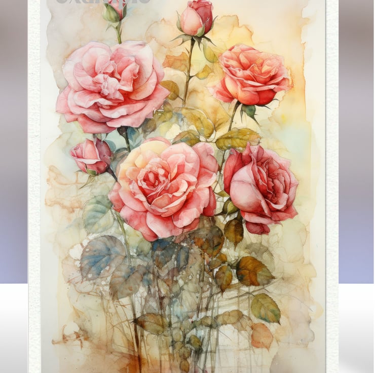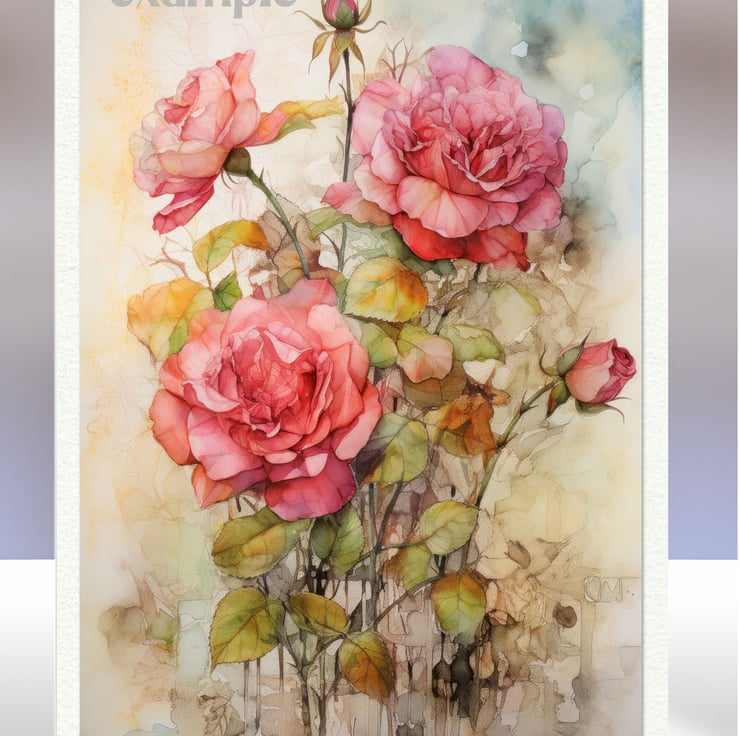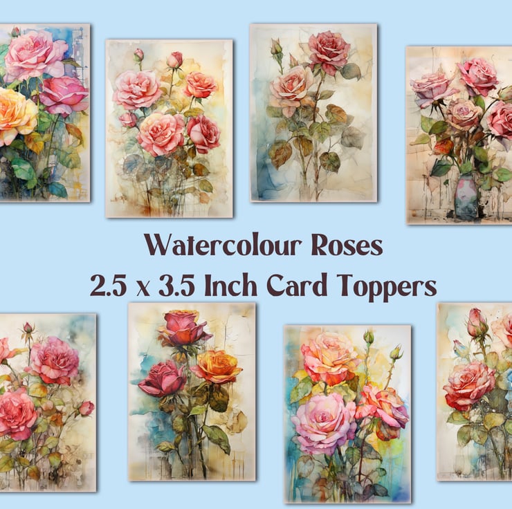 A set of eight 2.5 x 3.5 inch card toppers - Watercolour Roses
