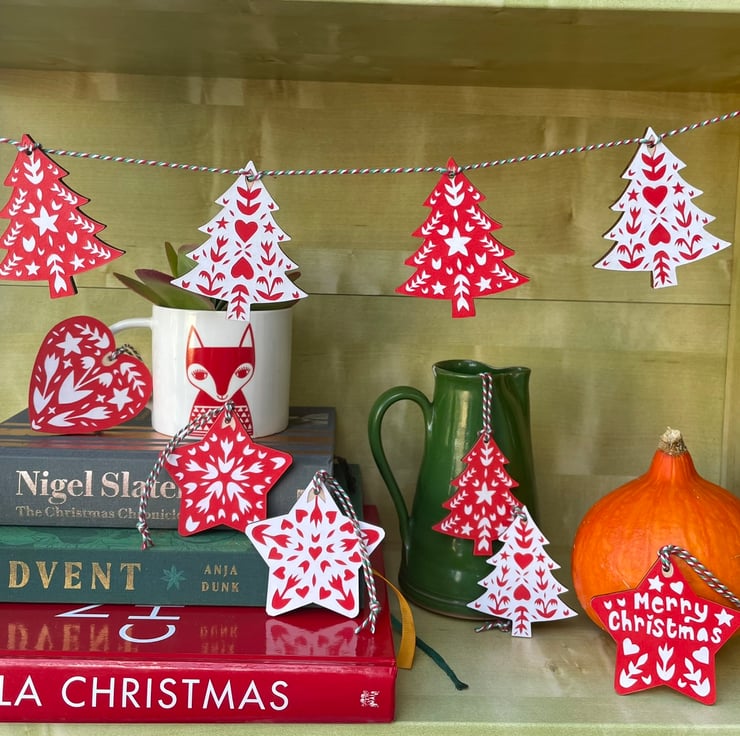Scandi inspired Christmas decorations in the shape of cute little Christmas trees!