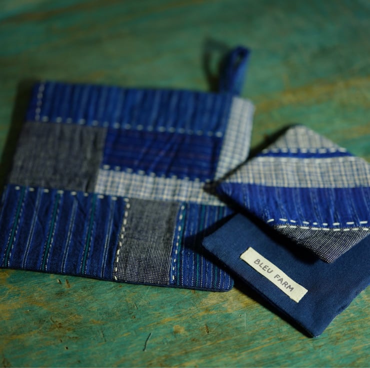 The inspiration for Bleu Farm items comes from a deep appreciation for vintage fabrics and the craftsmanship of rural village women who hand-wove these beautiful textiles. Each piece carries a sense of history and nostalgia, reminiscent of simpler times and childhood joy. My goal is bring these treasured fabrics into modern life, preserving their rustic charm while adding my own personal touch through slow stitching. Every item is not only practical but also a reflection of the beauty in imperfection and the joy of simple living.