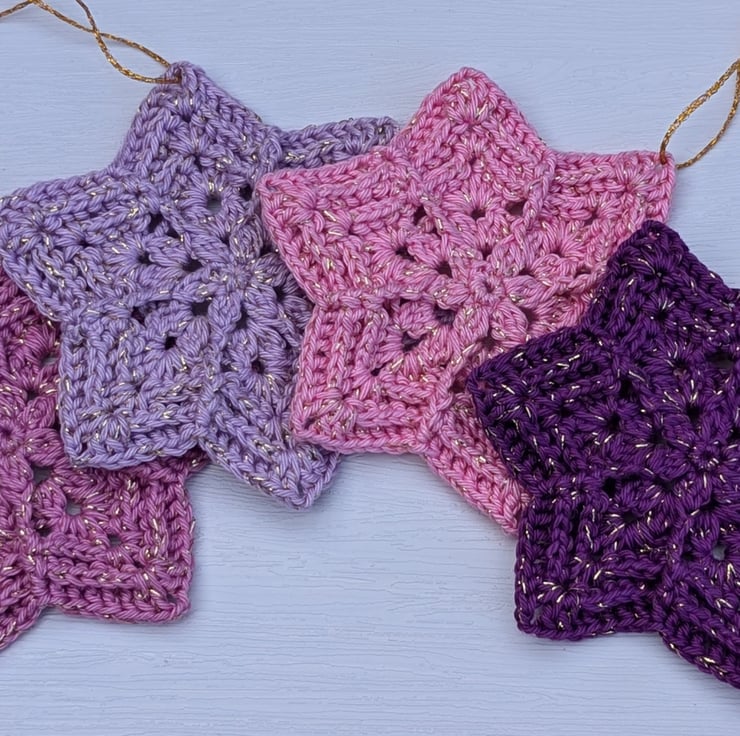 Set of 4 christmas stars in lovely sparkly pink and purple shades.