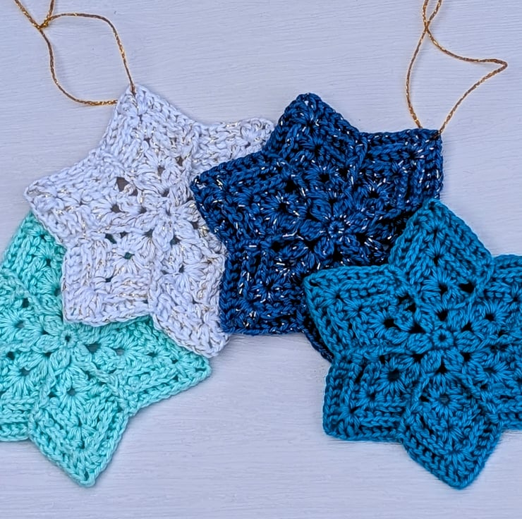 Set of 4 christmas stars,2plain and 2sparkly in blue shades and one white.