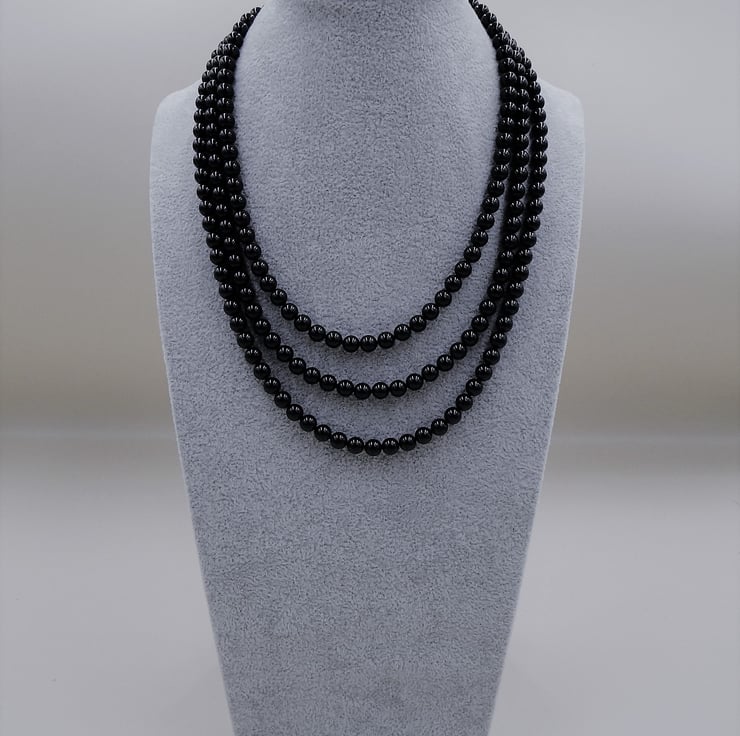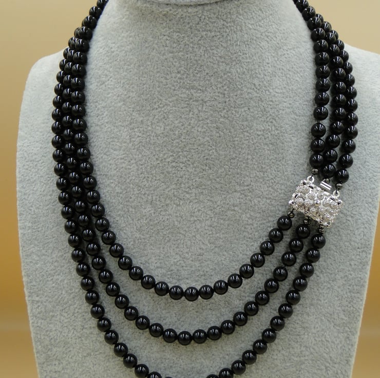 I have some luxurious black Swarovski beads which are becoming very difficult to buy. I wanted to make them into an Elegant multi-strand necklace.