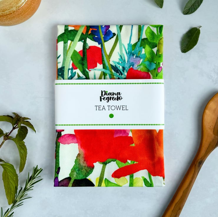 This poppies and lavender tea towel featuring a watercolour floral garden design makes for a delightful and thoughtful gift. This vibrant blend of poppies and lavender brings a touch of nature's elegance into any kitchen, combining the fiery reds and oranges of poppies with the soothing purples of lavender. The watercolour effect adds a gentle, artistic touch, capturing the essence of a blooming garden in full swing. Such a tea towel not only serves a practical purpose but also acts as a charming decorative piece, infusing everyday chores with a bit of floral beauty. Ideal for garden enthusiasts or anyone who appreciates the tranquility of floral motifs, this gift is sure to brighten up their kitchen space and bring a smile to their face.