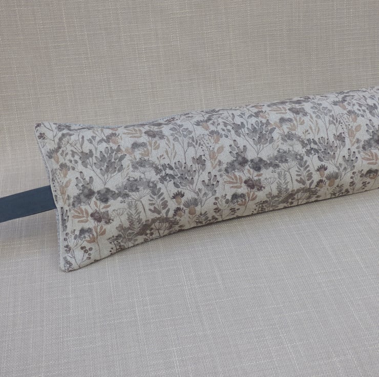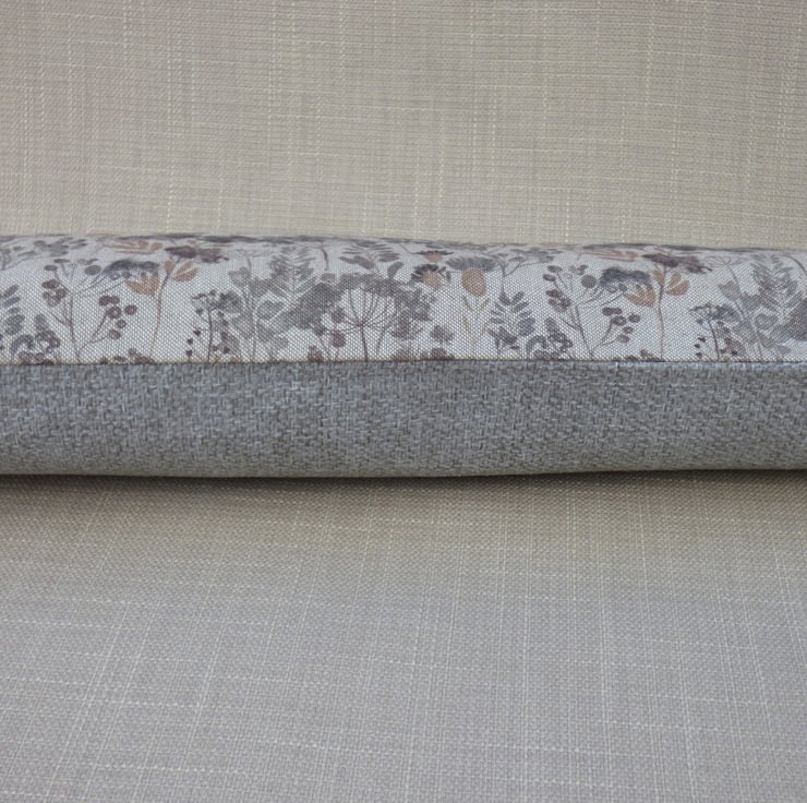 This is a handmade draught excluder, crafted using Autumn Garden Heather tapestry fabric, with a contrasting light grey upholstery fabric on the reverse. Filled with buckwheat hulls and wheat/rice. This excluder weighs more than 4 times the weight of a hollow fibre filled excluder.