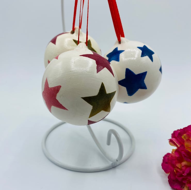 Brighten up the festive season with this ceramic Christmas Bauble, decoupaged with an Emma Bridgewater star design paper napkin.
