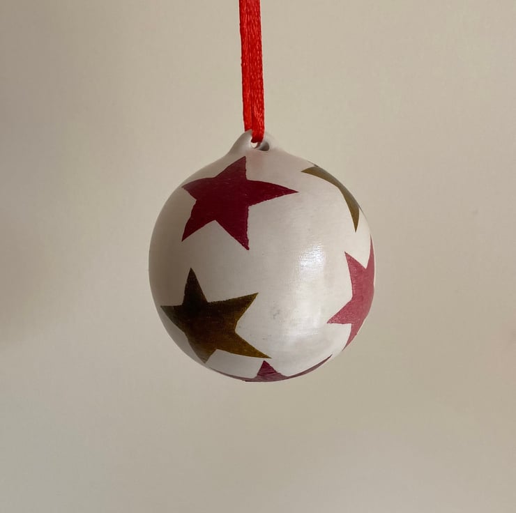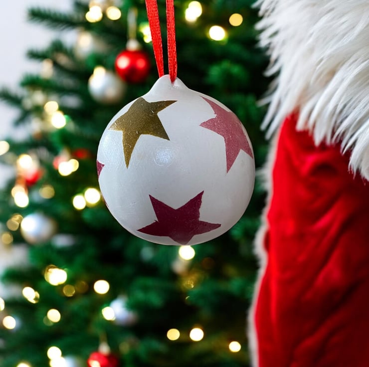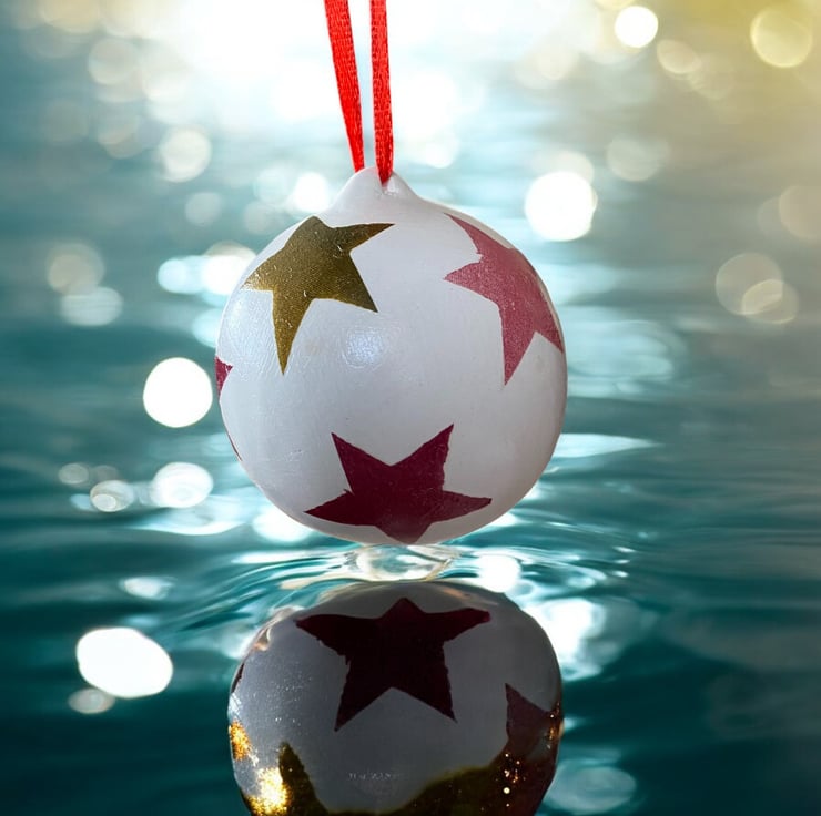 Brighten up the festive season with this ceramic Christmas Bauble, decoupaged with the Emma Bridgewater star design paper napkin.