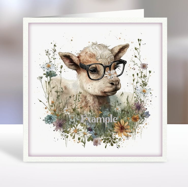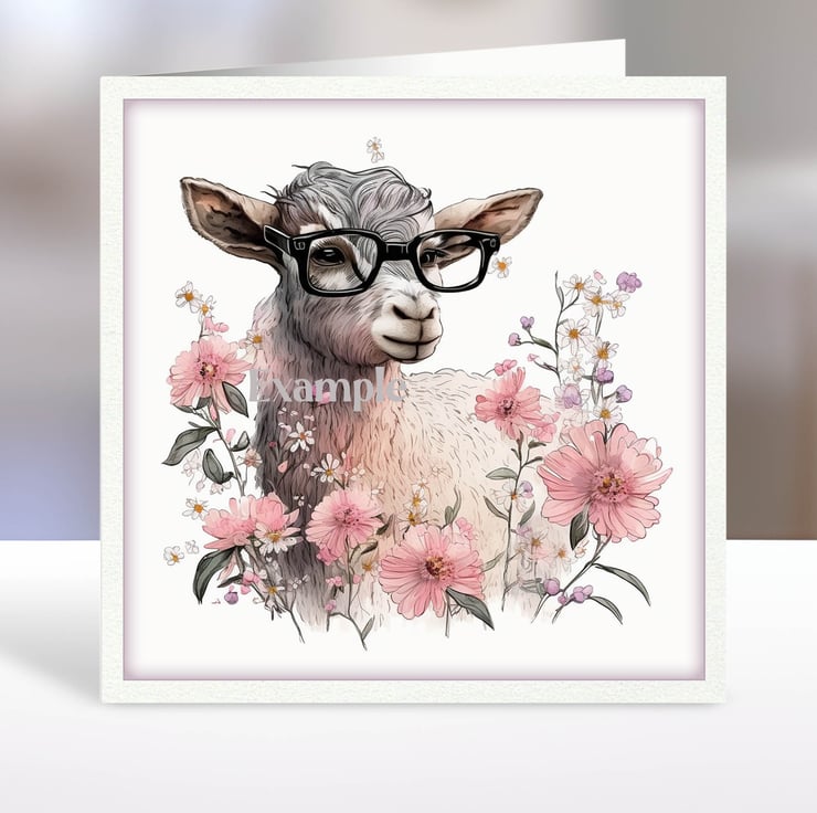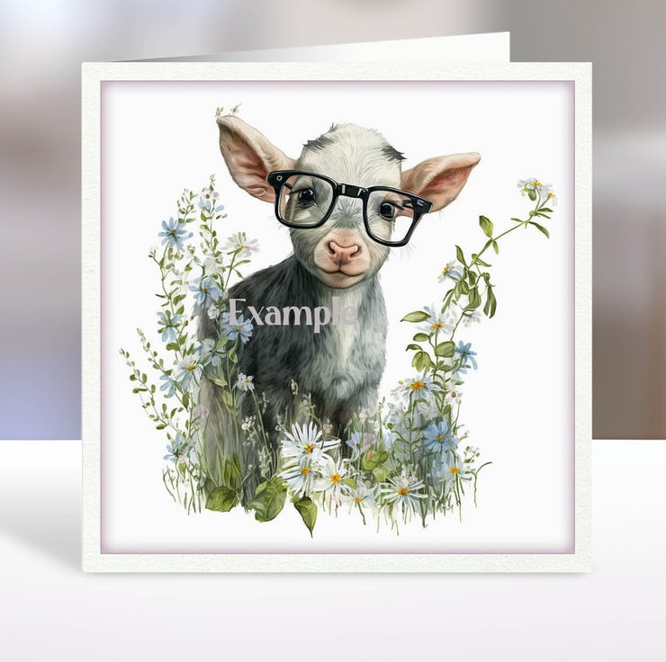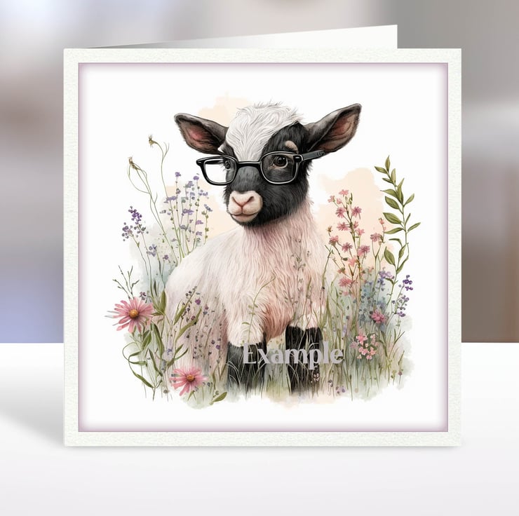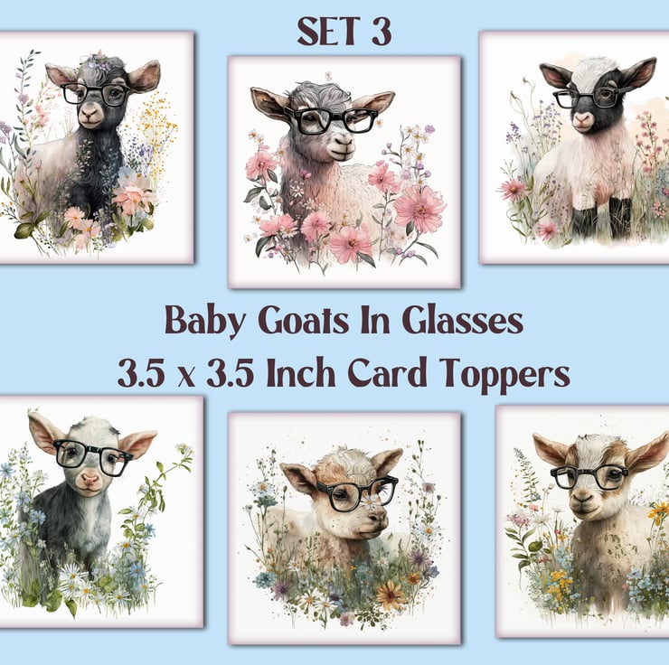 A set of six funny 3.5 inch square card toppers - baby goats in glasses Set 3 of 3