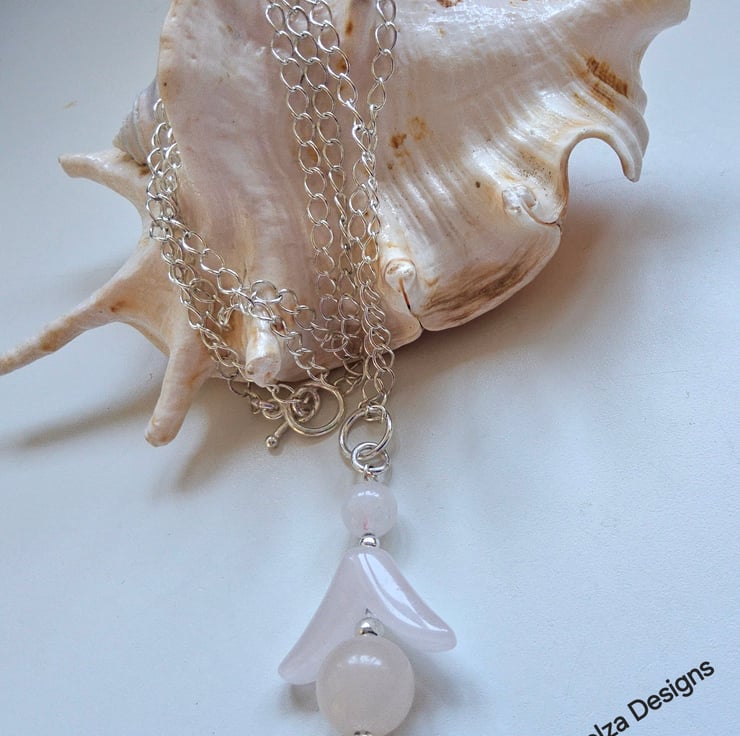 Rose Quartz Angel Pendant  925 Sterling Silver Plated with chain