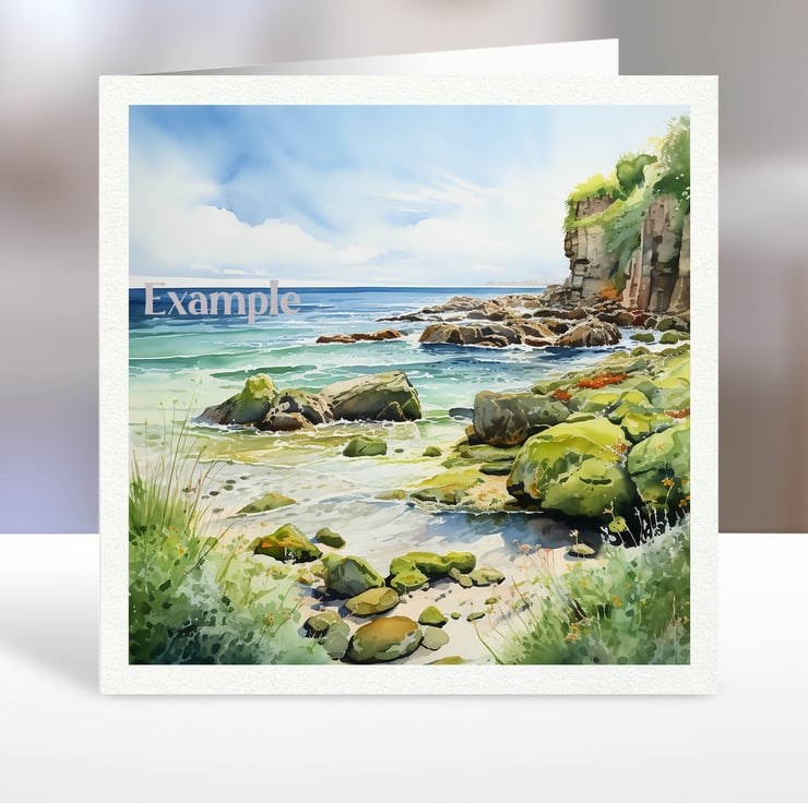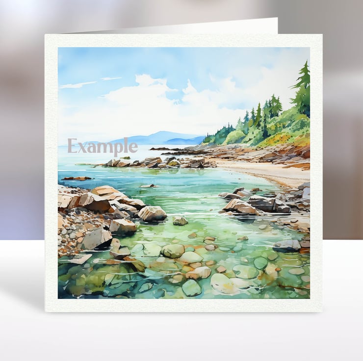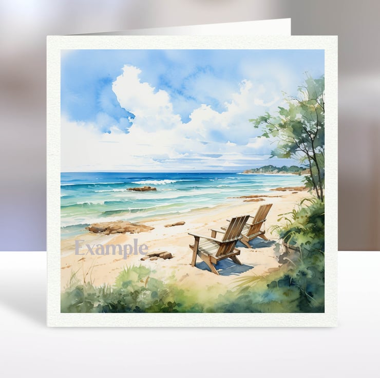 A set of six 3.5 inch square card toppers - Beach and lakeside scenes