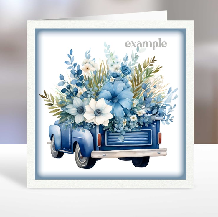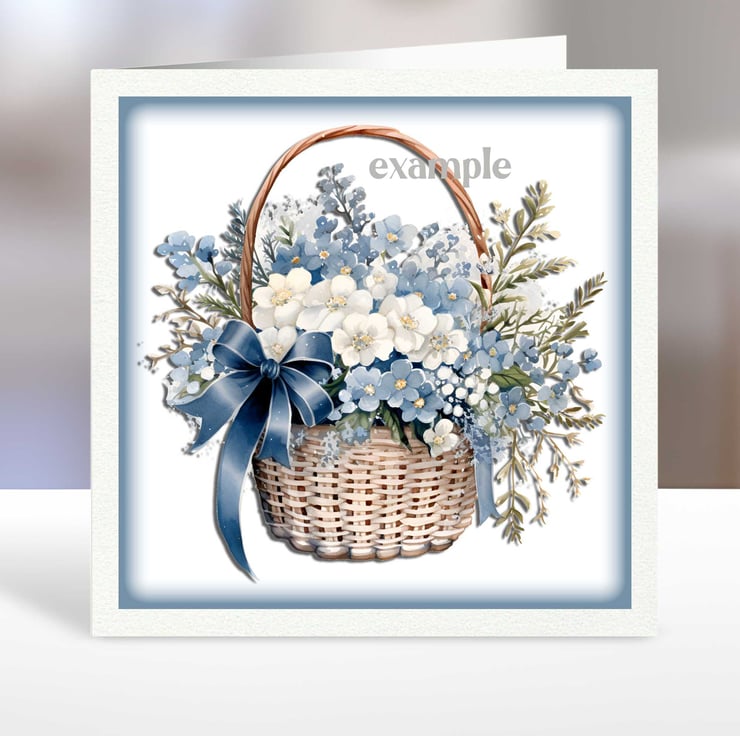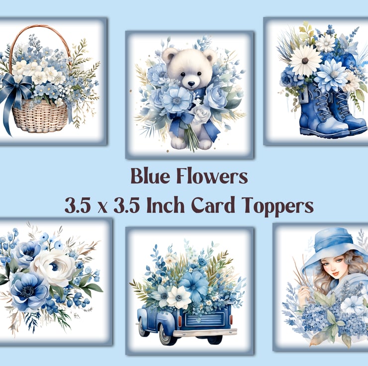 A set of six 3.5 inch square card toppers - Blue Flowers