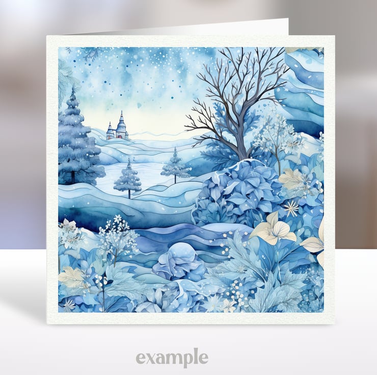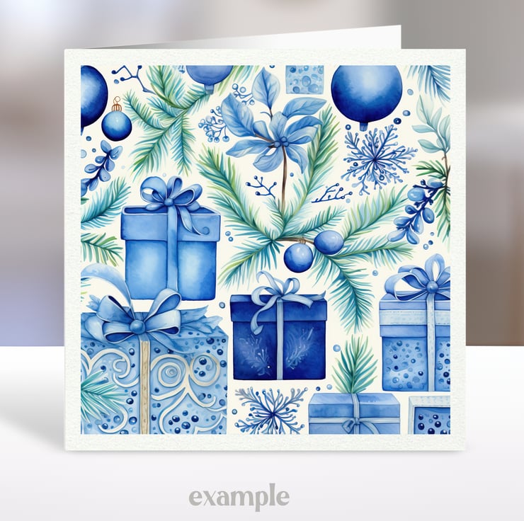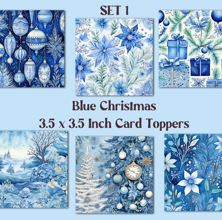 A set of six 3.5 inch square card toppers - Blue Christmas Set 1 of 2