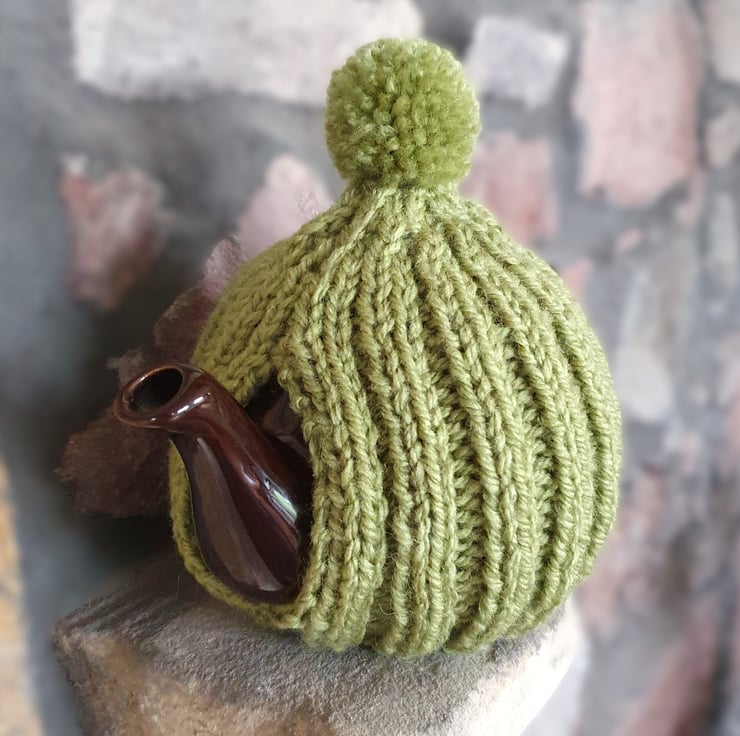 Small Tea Cosy for 2 Cup Tea Pot, Pistachio Green, Hand Knitted
