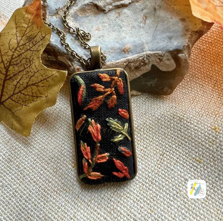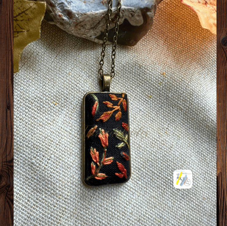 Beautiful bronze settings fall autumn design embroidered Pendant created with love and passion... Tried to make it look beautiful by intricacy..